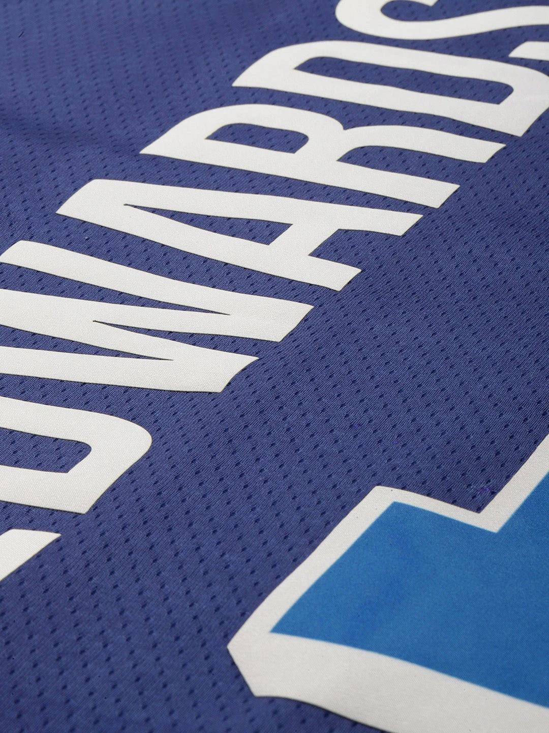 Hockey inspired sublimation t-shirt Team silicon badge on the front and NBA silicon badge transfer to the back neck Player name and number fabric transfer to the front and back of the garment Gender: Unisex Fabric: 100% Poly Rice Knit Fit: Oversized Fit Brand: National Basketball Players Association