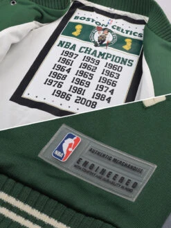 The National Basketball Association or NBA is one of the premier institutions for basketball in the world. Celebrate your love for the NBA and for the game of basketball with our official NBA merchandise! This sporty Letterman Jacket is made with soft fleece and embellished with an applique ‘Celtics’ logo across the chest and equally sporty embroidery at sleeve. This one of a kind Champions jacket is one of our favorite additions to any Celtics Wardrobe.