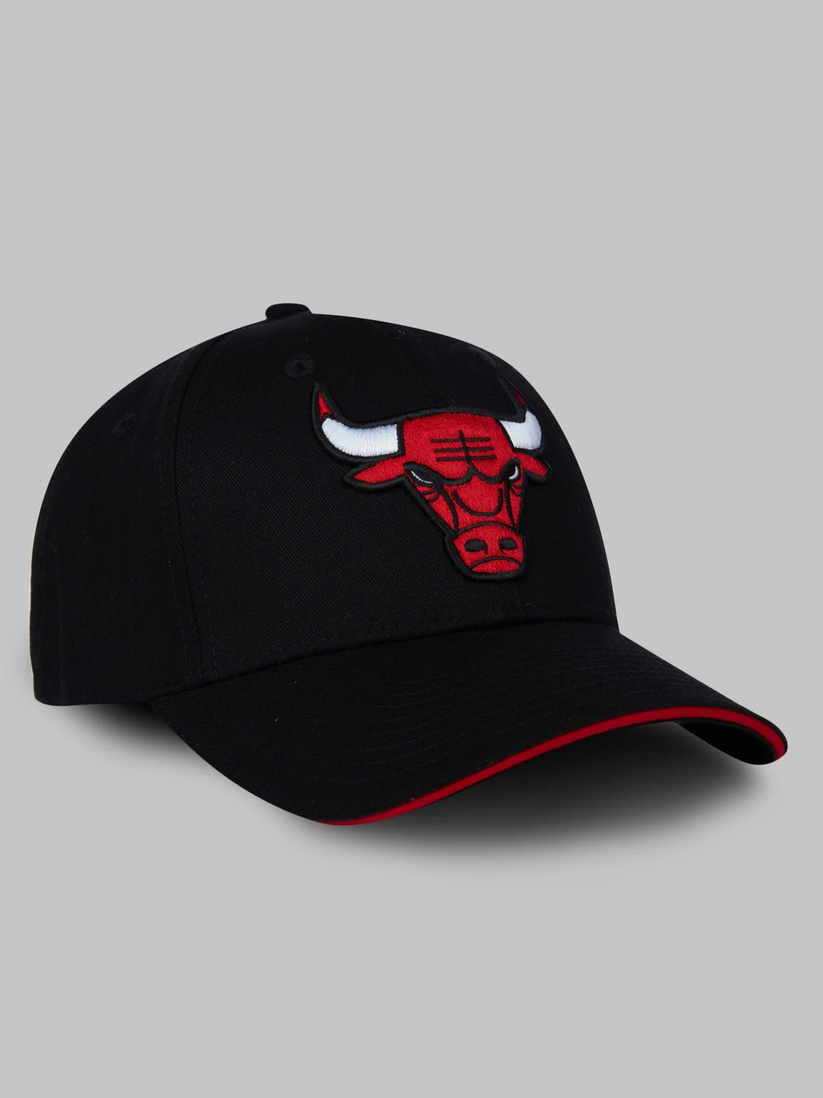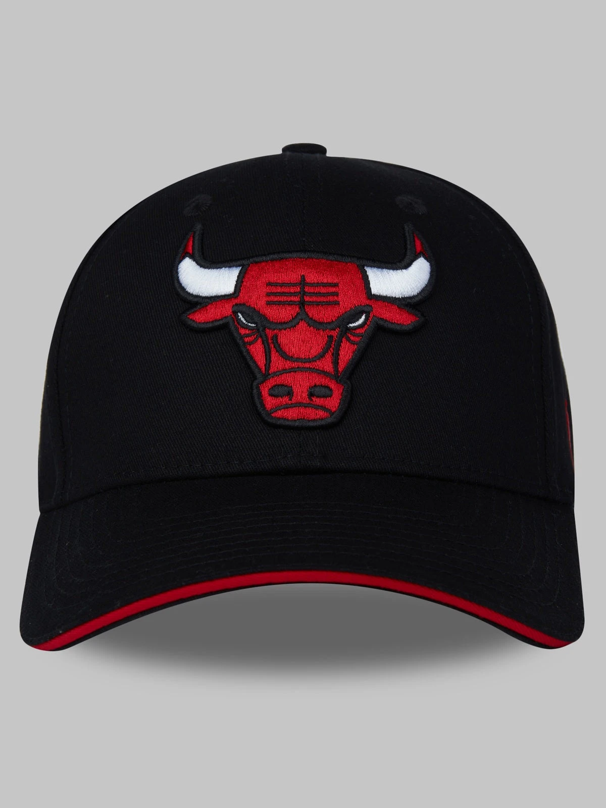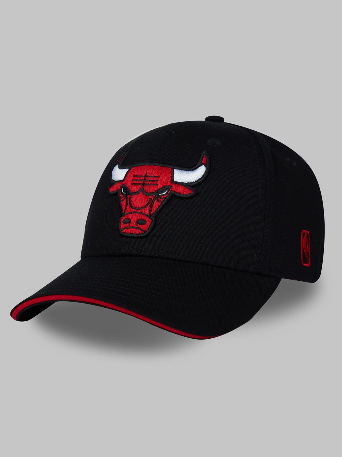 Baseball adjustable cap with snapback enclosure Chicago Bulls logo embroidered to the front crown Curved visor Structured crown NBA logo embroidered on left Gender: Unisex Fabric: 100% Cotton Fit: Baseball Cap Brand: National Basketball Association