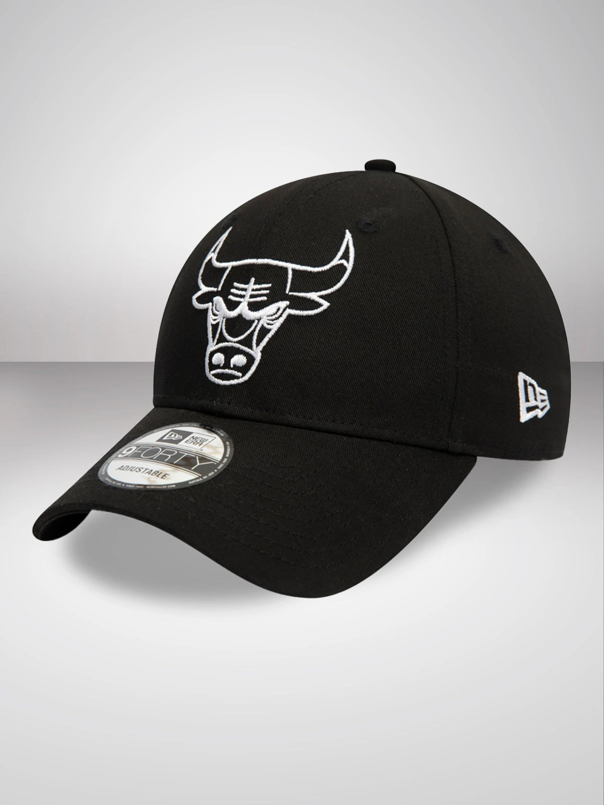 Chicago Bulls Outline 9FORTY cap. Chicago Bulls logo at front. Embroidered New Era flag on left. Adjustable design. Contoured crown. Curved visor.
