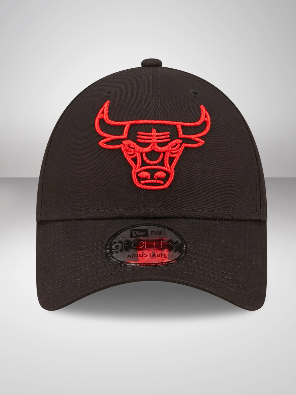 Official New Era Neon Outline Chicago Bulls 9FORTY Cap. Bulls logo on front. New Era Flag on left. Structured crown. Strapback. Curved visor. 100% COTTON. For: Unisex Fabric: 100% Cotton Fit Type: One Size Fits Most Team: Chicago Bulls