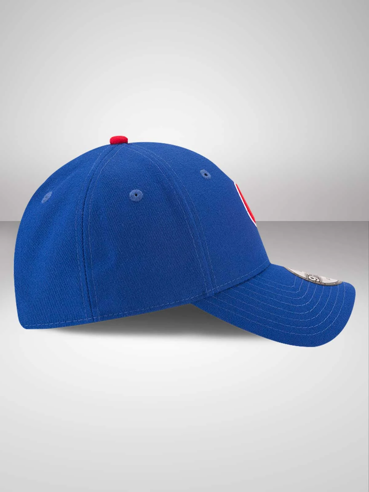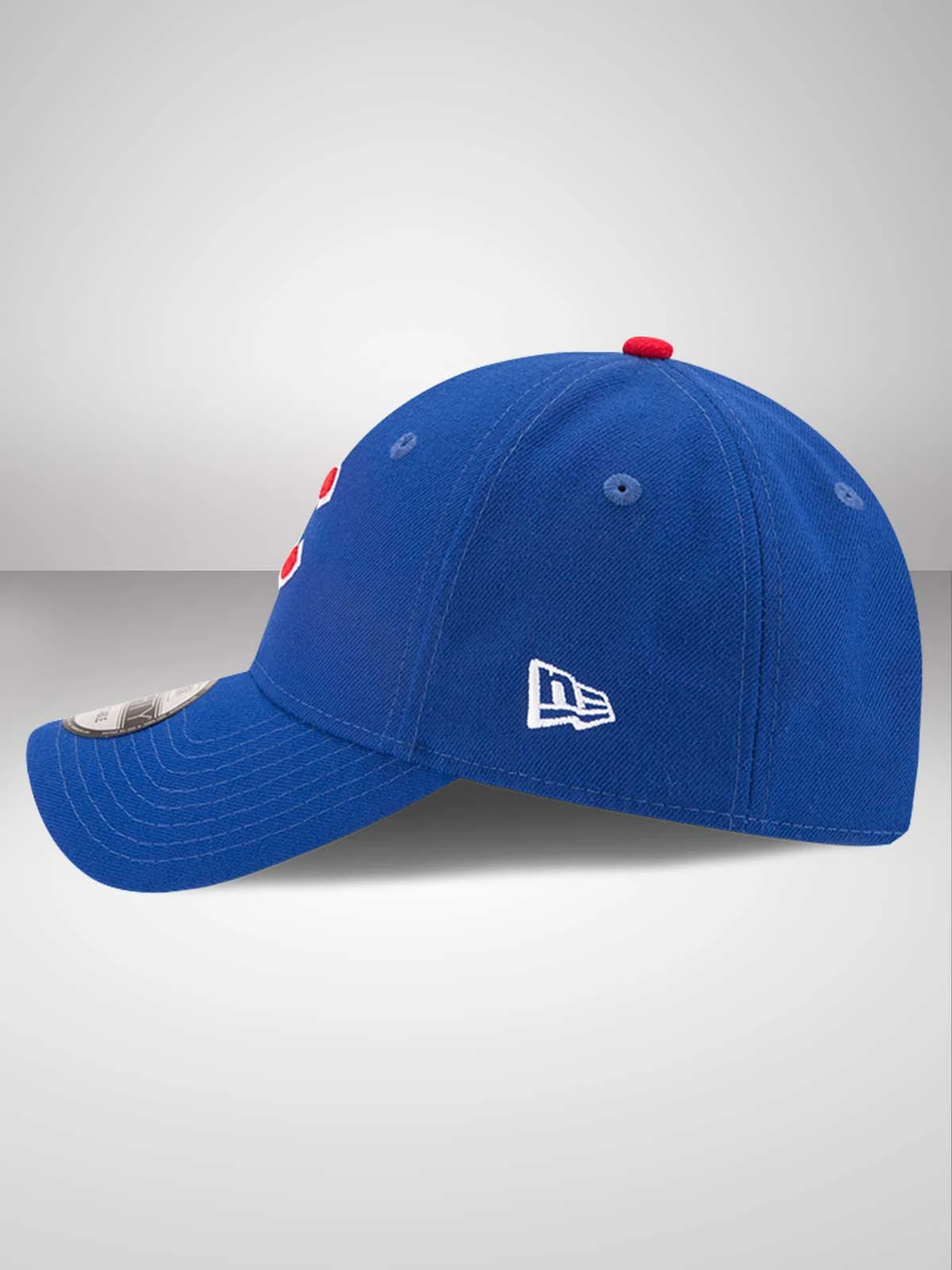 Official replica of the on-field cap worn by the MLB players. Chicago Cubs team logo embroidered on the front. Official team colors. Contoured crown with a curved visor. Velcro fastening fabric strapback with embroidered team name. New Era flag embroidered in white to the left hand side.
