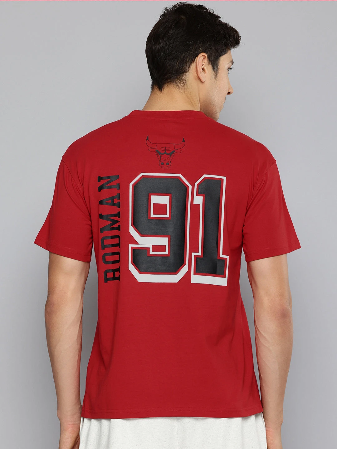 Oversized NBA Legends t-shirt with team name and logo printed to the centre front chest. Rodman name and number printed on the back. Pre-Shrunk: Our garment is pre-shrunk reducing shrinkage after washing. Gender: Unisex Fabric: 100% Cotton Single Jersey 220 GSM Fit: Oversized fit Brand: National Basketball Association