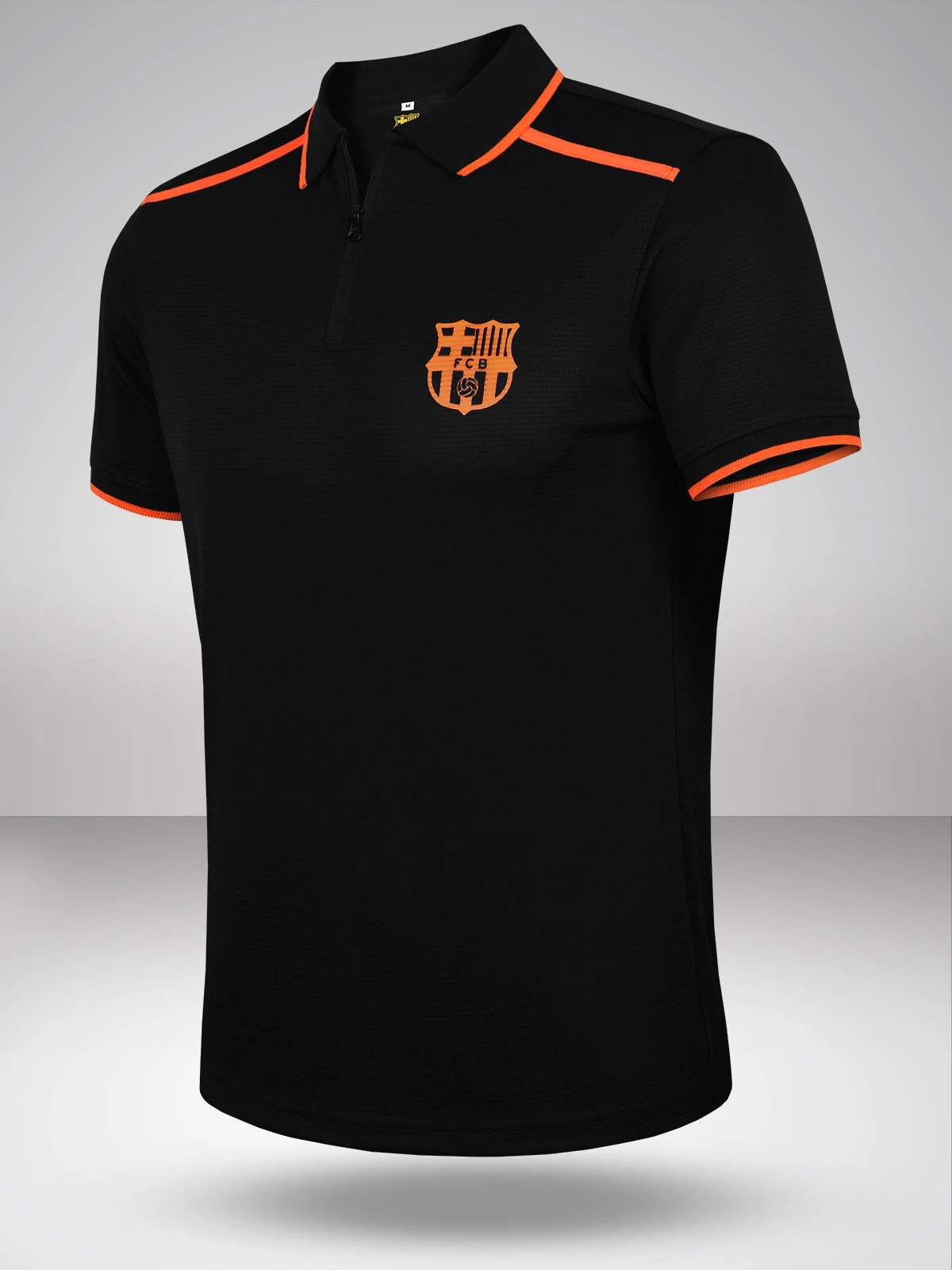 Gear up with our Black FC Barcelona Performance Polo, a nod to Barça pride! Unzip the competition with the opposite puller zip, and let the FCB logo in neon orange print on the left chest showcase your love for the game. Neon orange accents on the shoulders and sleeves, along with a vibrant tipping on the collar, infuse the spirit of Barça into every stitch. This polo is not just a garment; it’s a celebration of the rich history and passion of FC Barcelona. Whether you’re at the stadium or hitting the streets, wear your Barça pride with style and confidence. Elevate your game, embrace the legacy, and let the world know – you’re not just a fan; you’re a part of the Barça family.For: Men Fabric: 100% Poly Rice Knit Fit Type: Regular Fit Brand: FC Barcelona