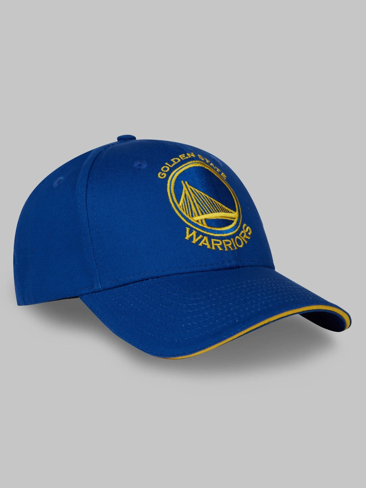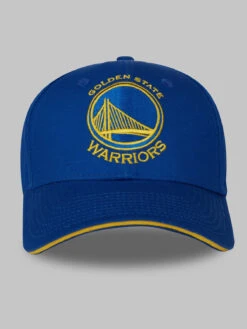 Baseball adjustable cap with snapback enclosure Golden State Warriors logo embroiderd to the front crown Curved visor Structured crown NBA logo embroidered on left Gender: Unisex Fabric: 100% Cotton Fit: Baseball Cap Brand: National Basketball Association