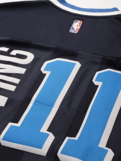 Vintage oversized t-shirt with tonal stripes on the front and back Team silicon badge transfer and NBA silicon badge transfer Player name and number matte transfer to the front and back of the garment Gender: Unisex Fabric: 100% Poly Rice Knit Fit: Oversized Fit Brand: National Basketball Players Association