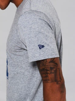 Cotton jersey logo Tee, featuring large print Team logo to centre front panels. Also small woven MLB Batterman logo above right side hem, with embroidered New Era flag on left cuff.