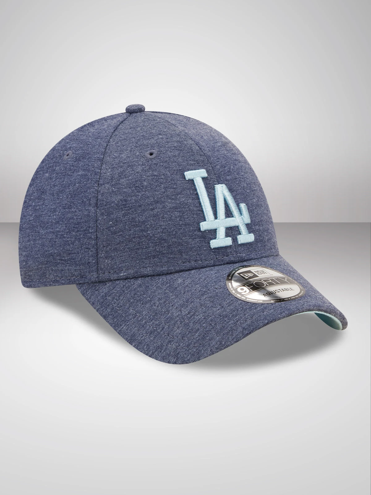 Official New Era Jersey Essential LA Dodgers 9FORTY Cap. Dodgers logo on front. New Era Flag on left. Structured crown. Strapback. Curved visor. Pastel blue undervisor. For: Unisex Fabric: 100% Polyester Fit Type: One Size Fits Most Team: Los Angeles Dodgers