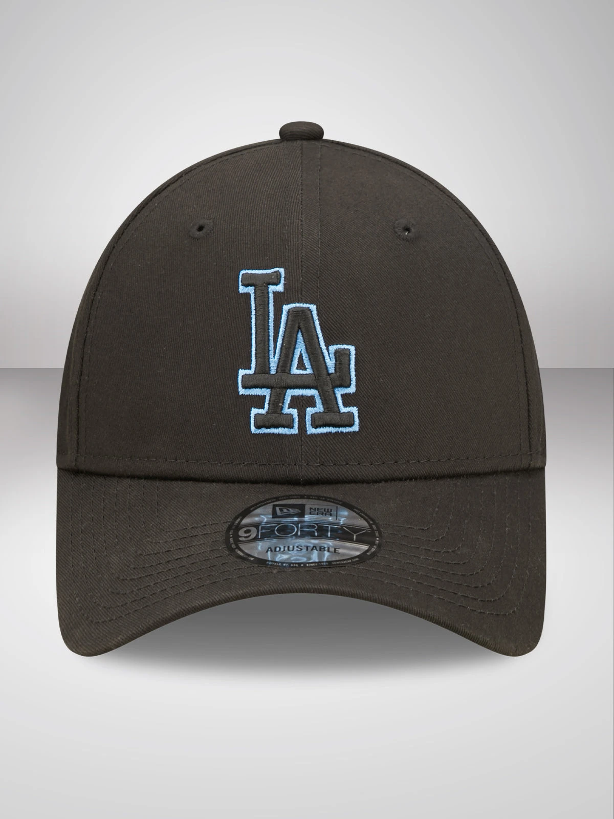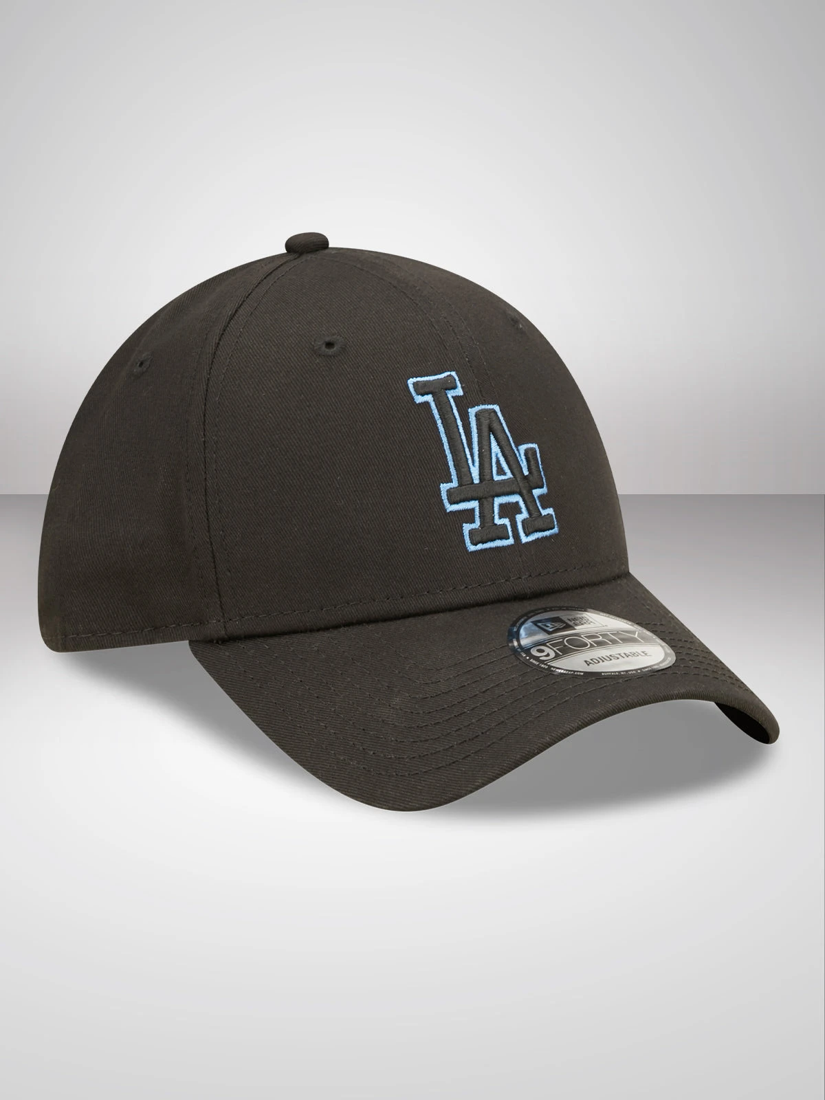 Official New Era Team Outline La Dodgers Black 9FORTY Cap. Structured crown. Strapback. Curved visor. Team Logo on front. New Era badge on left.Â