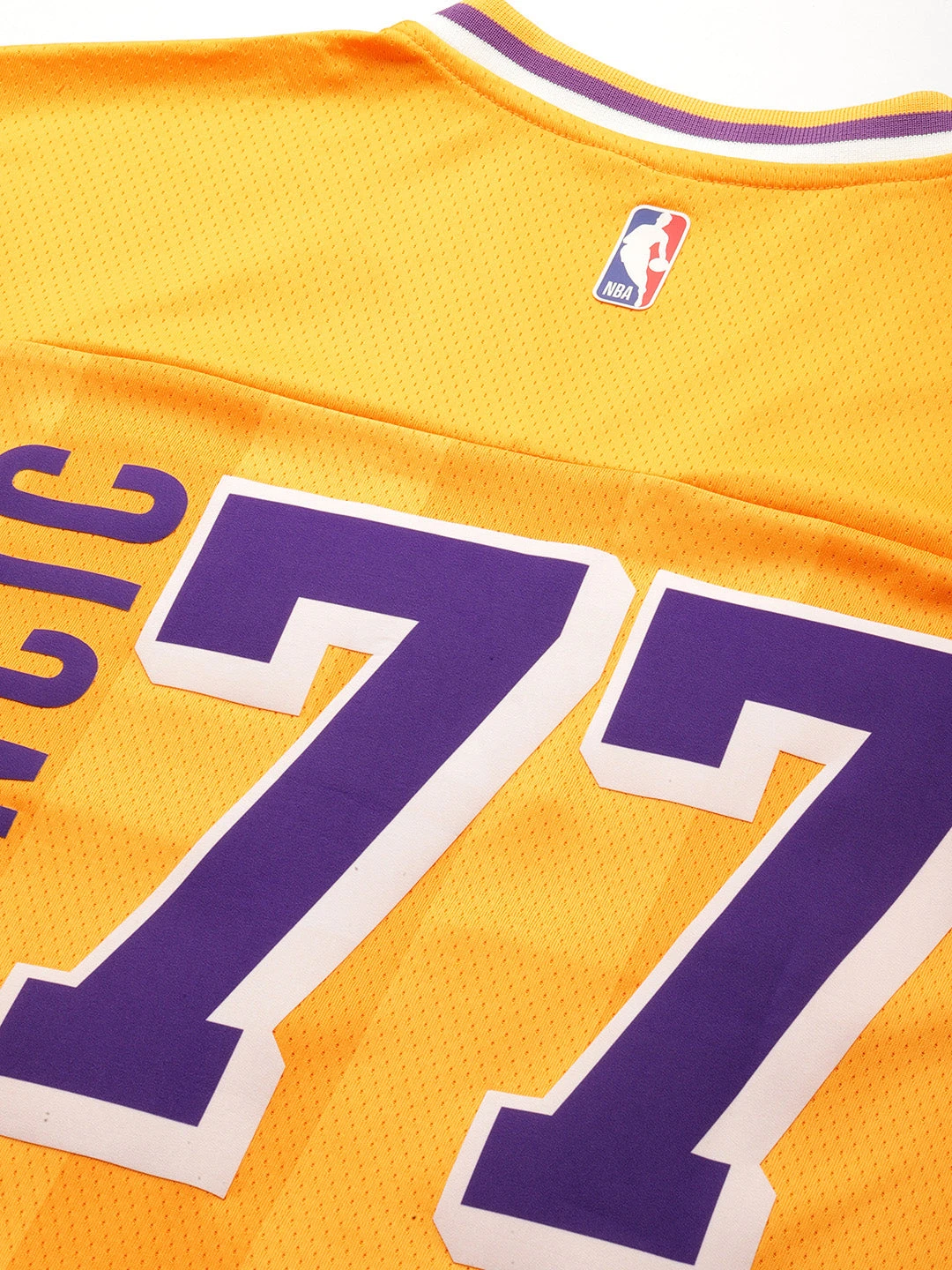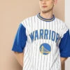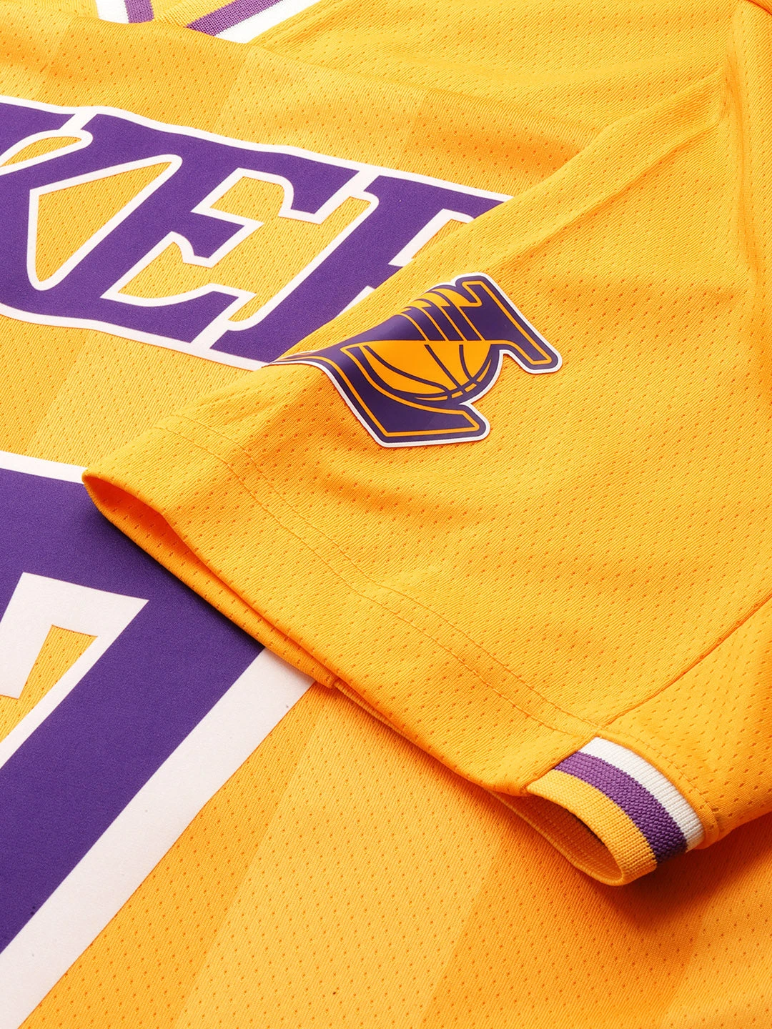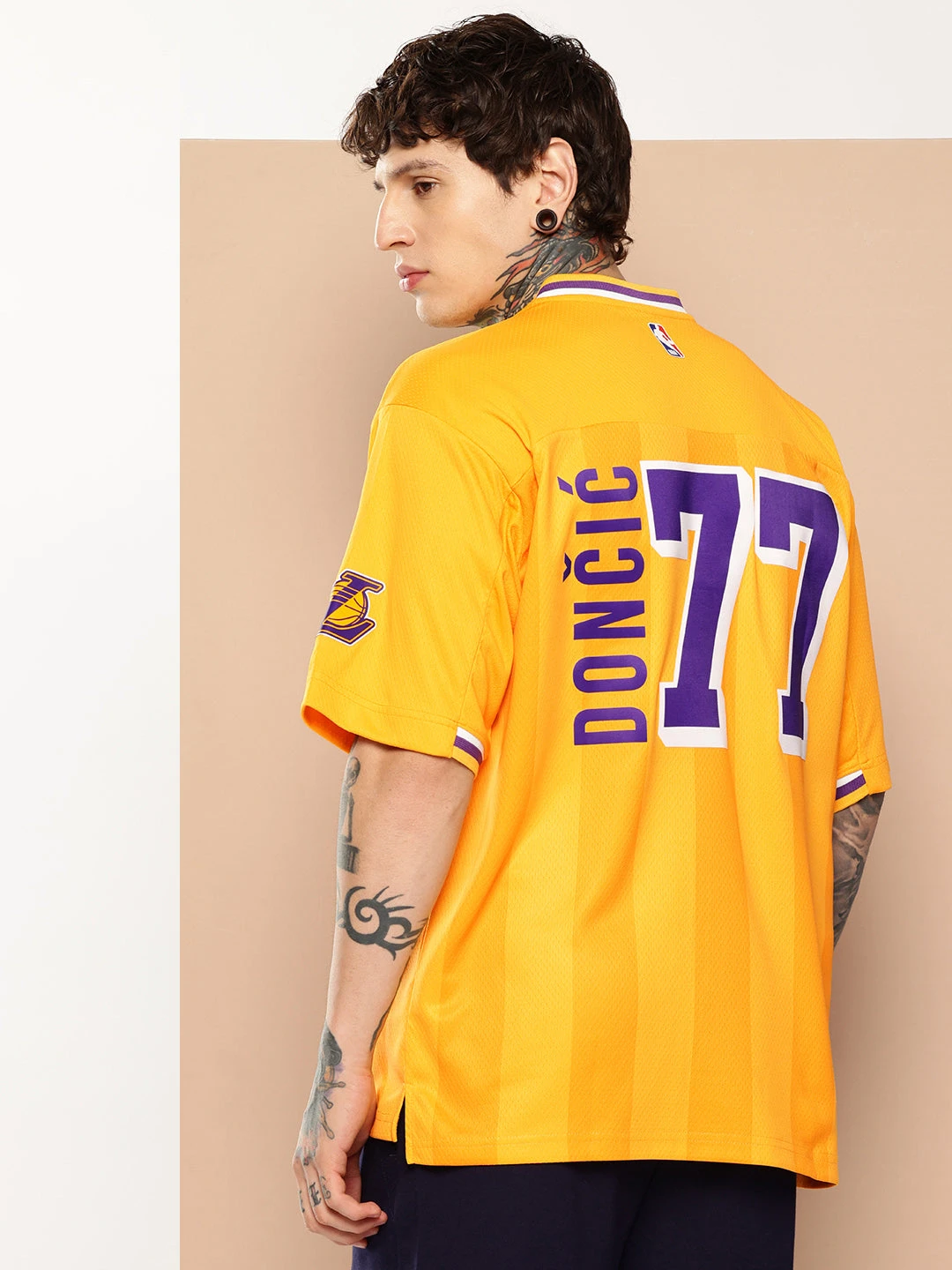 Vintage oversized t-shirt with tonal stripes on the front and back Team silicon badge transfer and NBA silicon badge transfer Player name and number matte transfer to the front and back of the garment Gender: Unisex Fabric: 100% Polyester Rice Knit Fit: Oversized Fit Brand: National Basketball Players Association