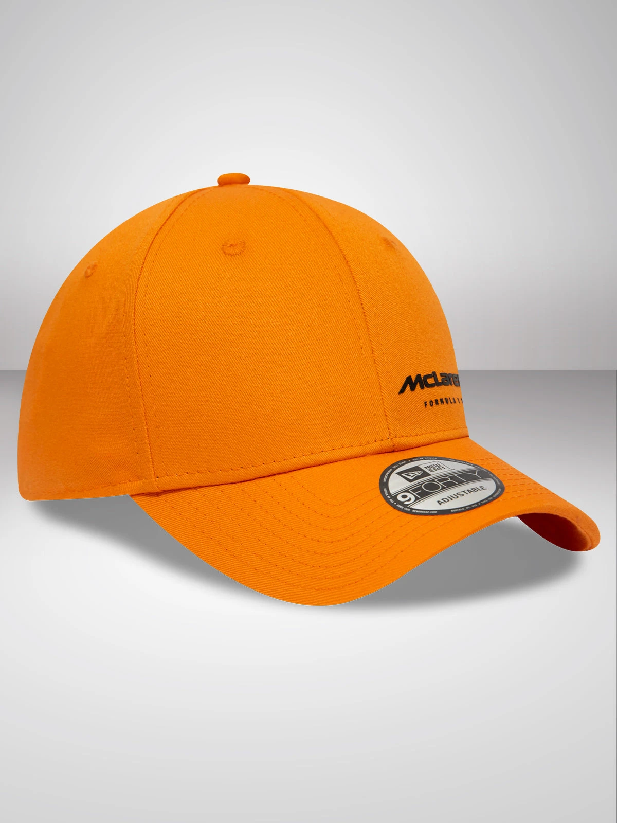 Official New Era McLaren Racing Flawless 9FORTY Cap. Structured crown. Snapback. Curved visor. Orange undervisor. McLaren logo on front. New Era flag on left. For: Unisex Fabric: 100% Cotton Fit Type: One Size Fits Most Team: Mclaren Racing