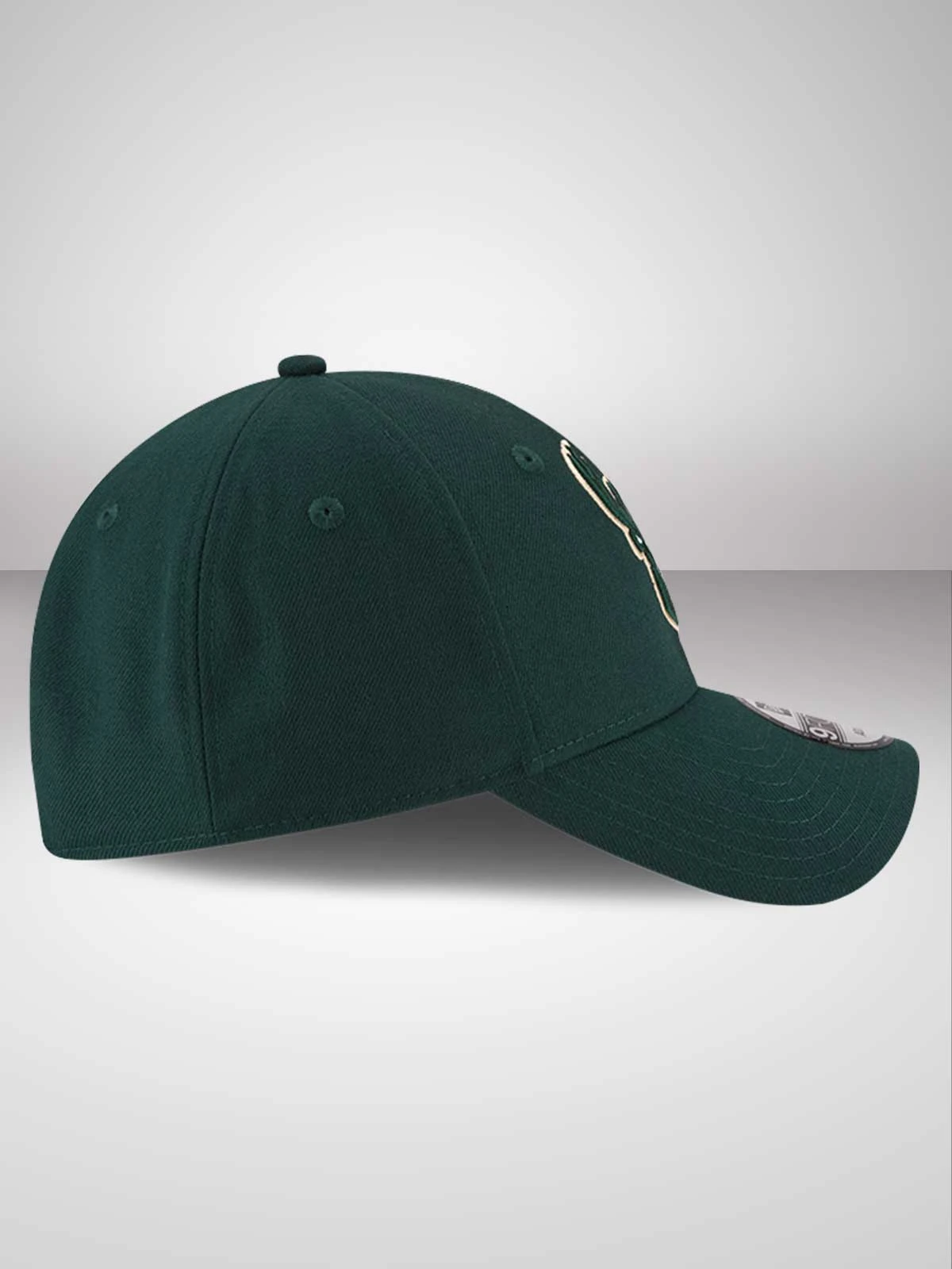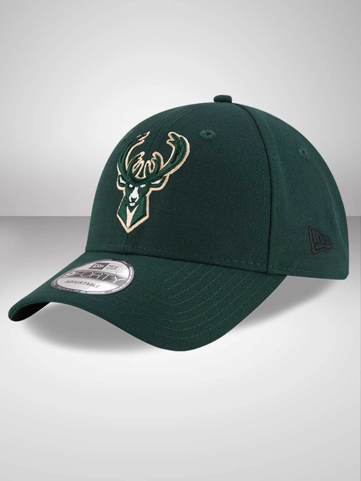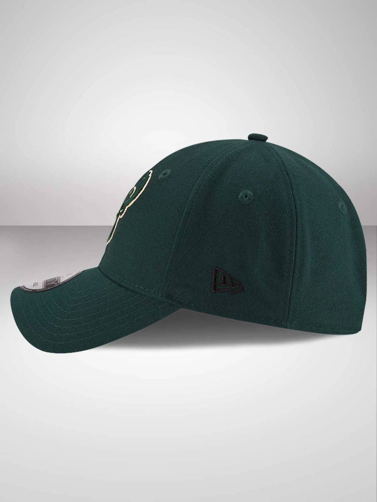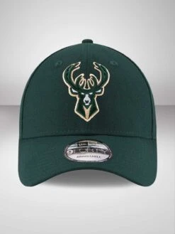 Adjustable 9FORTY fit. Round contoured crown in all-over dark green. Ready curved visor in green. Milwaukee Bucks’ official team logo embroidered to the front of the cap. Adjustable Velcro closure to the rear. Tonal top button and stitched eyelets for added breathability. New Era flag embroidered to the left hand side in black stitching.