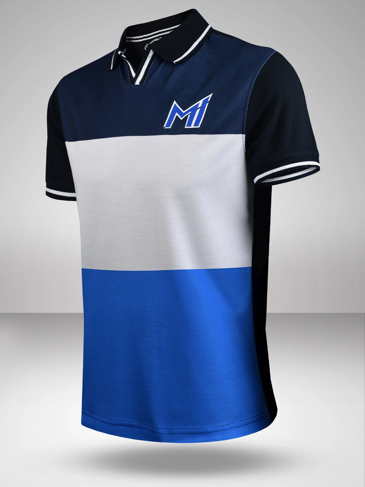 Introducing the Mumbai Indians: Colour Blocked Team Polo, a striking fusion of style and team pride. Crafted with meticulous attention to detail, this polo features bold navy blue, crisp white, and regal royal blue color blocking, reflecting the iconic hues of the Mumbai Indians. The addition of white tipping at the collars and sleeves adds a touch of sophistication to this sporty ensemble. Whether you’re at the game or out and about, this polo ensures you represent the Paltans in standout fashion. Elevate your fan gear with this exclusive piece.