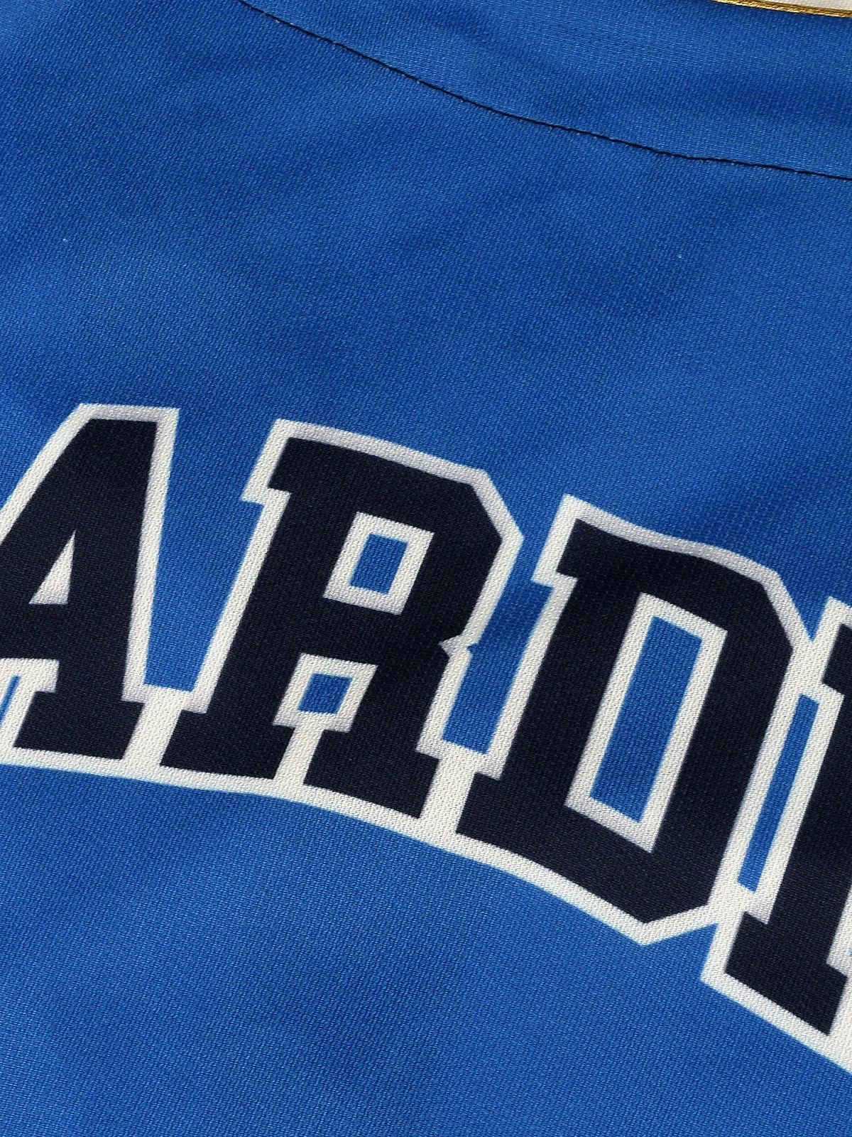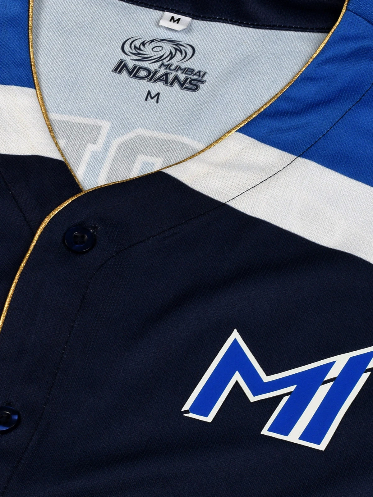 Introducing the Mumbai Indians ‘Hardik’ Baseball Shirt, a tribute to the Mumbai Indians Captain. This navy blue shirt exudes sporty style, with contrasting white and royal blue accents on the shoulders. The iconic MI logo graces the left chest, symbolizing allegiance to the Paltans. On the back, ‘Hardik 33’ proudly displays the name and number of the dynamic player. Whether you’re cheering from the stands or hitting the streets, this shirt lets you show your support for both the team and the individual brilliance of Hardik Pandya. Join the Mumbai Indians Paltan and sport this exclusive piece.