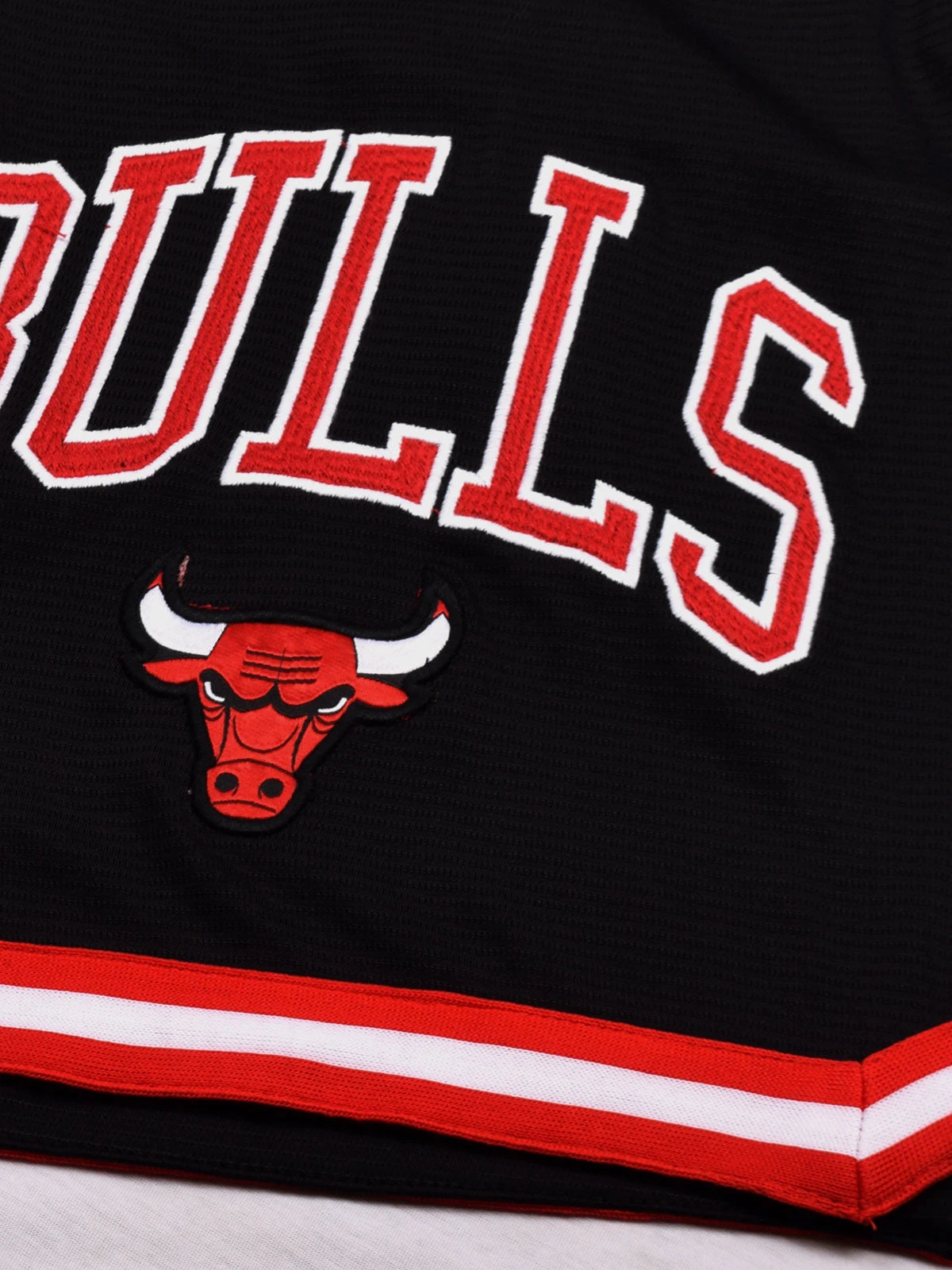 Dribble in style with our Chicago Bulls OG Basketball Shorts! These black shorts are more than a slam dunk with a black drawcord, side seam pocket, and a splash of Bulls pride – from Bulls wordmark embroidery to the iconic logo badge on the left leg. The white fabric patch on red waistband and V cuts on the sides with Red & White tape add an extra flair. Whether you’re hitting the court or lounging at home, these shorts guarantee comfort and Bulls spirit.