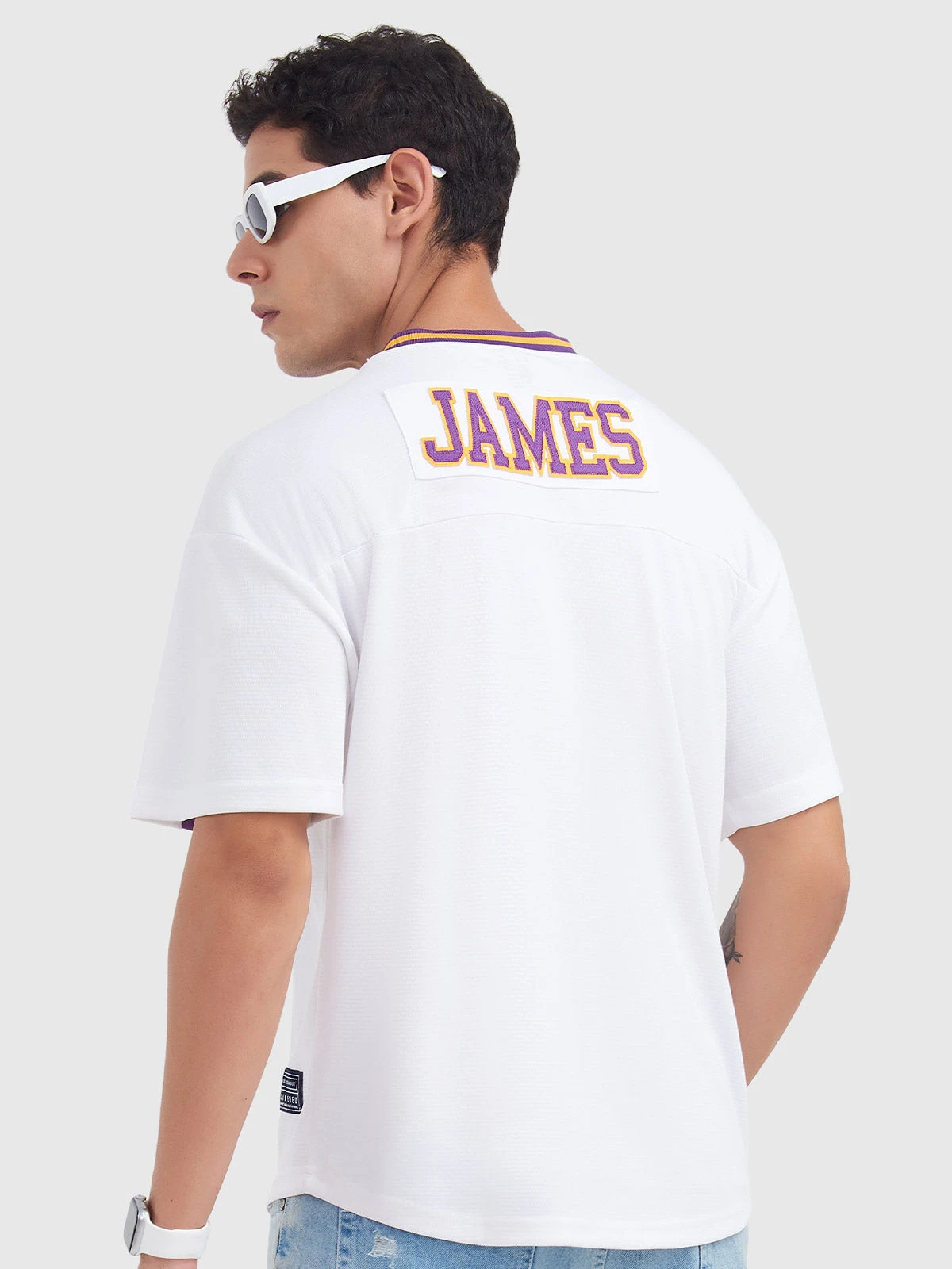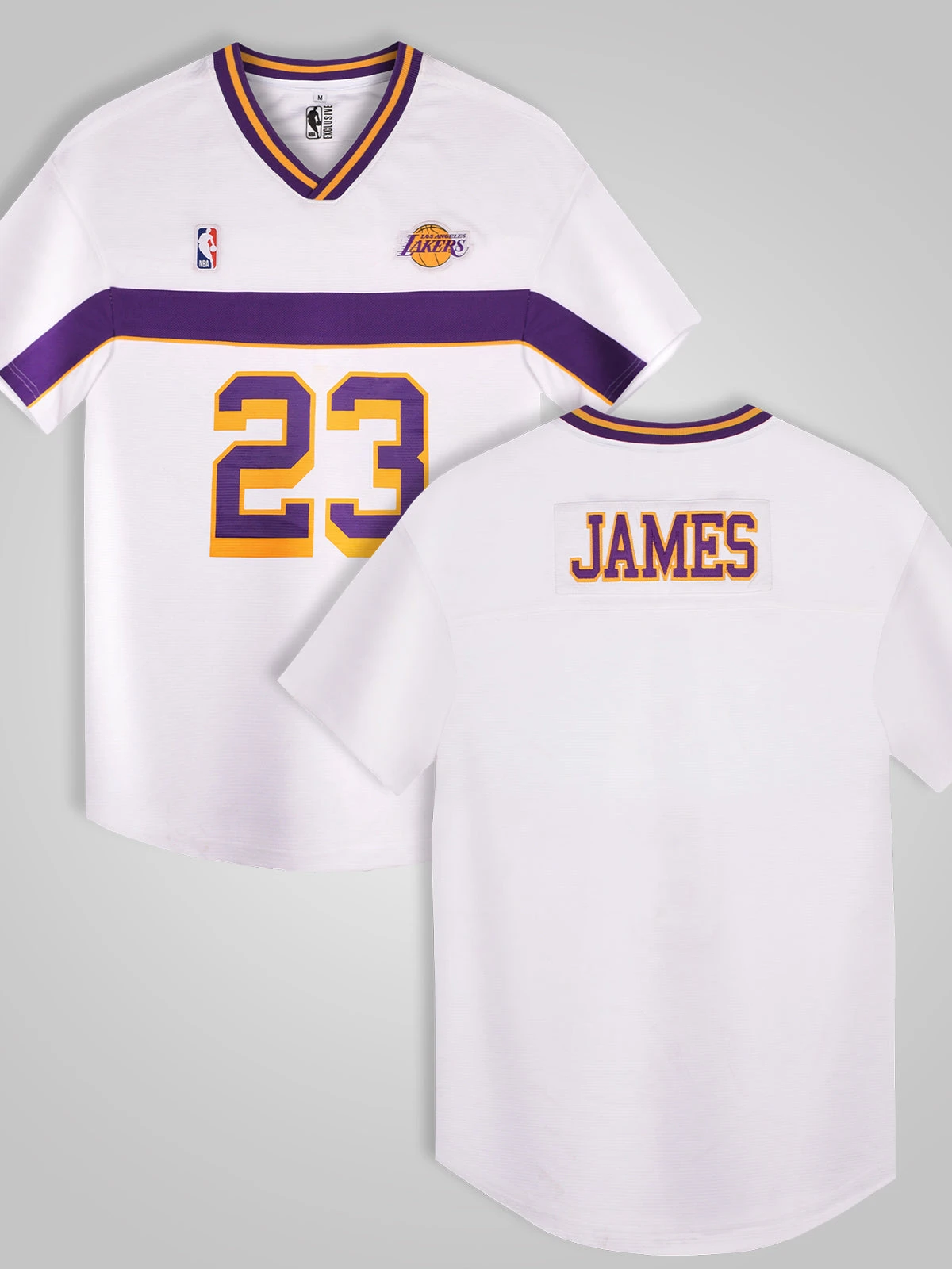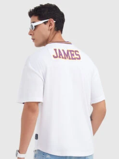 Step into the spotlight with our NBA LeBron James Rugby T-Shirt! This stunner brings the game to life with “James” appliqué on the back, a Lakers logo badge on the left chest, and an NBA logo badge on the right. The V-neck pops with purple and mustard tape, and the chest features vibrant purple taping with yellow piping. It’s a slam dunk for fans who love sportsmanship and craftsmanship. Whether you’re courtside or hitting the town, this tee guarantees major style points.