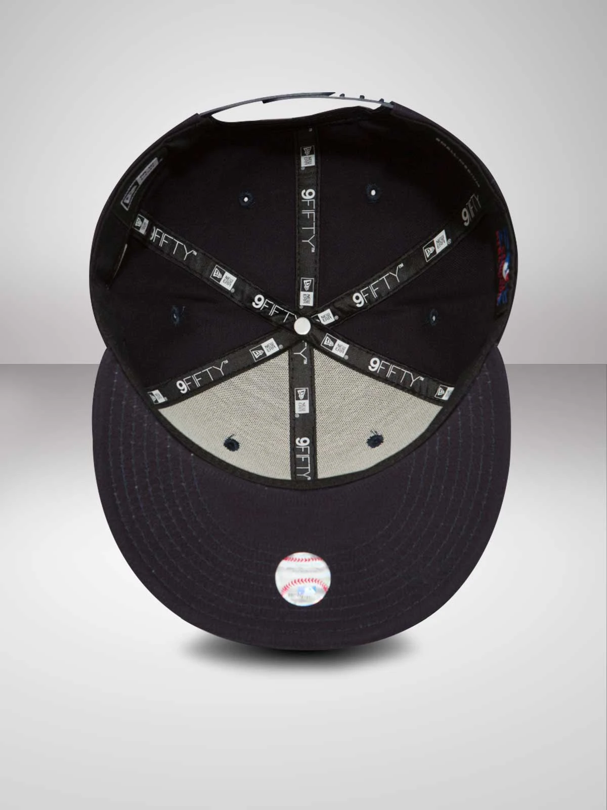 Get behind the New York Yankees this MLB season with this classic cap. Structured high crown 9FIFTY profile with a flat visor. Features raised optic white stitch ‘NY’ logo to the front. Matching top button. Fully adjustable with a tonal plastic snapback. New Era flag embroidered in white to the left hand side.