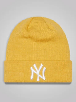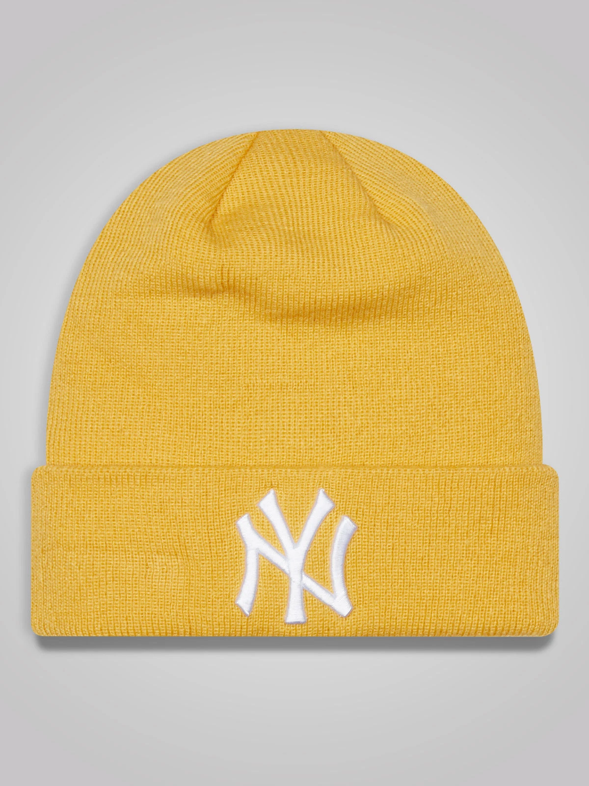 Official New Era New York Yankees MLB League Essential Honeycomb Cuff Beanie Hat. NY logo on front of cuff. Knitted crown. Upturned cuff. Embroidered New Era flag to the left.