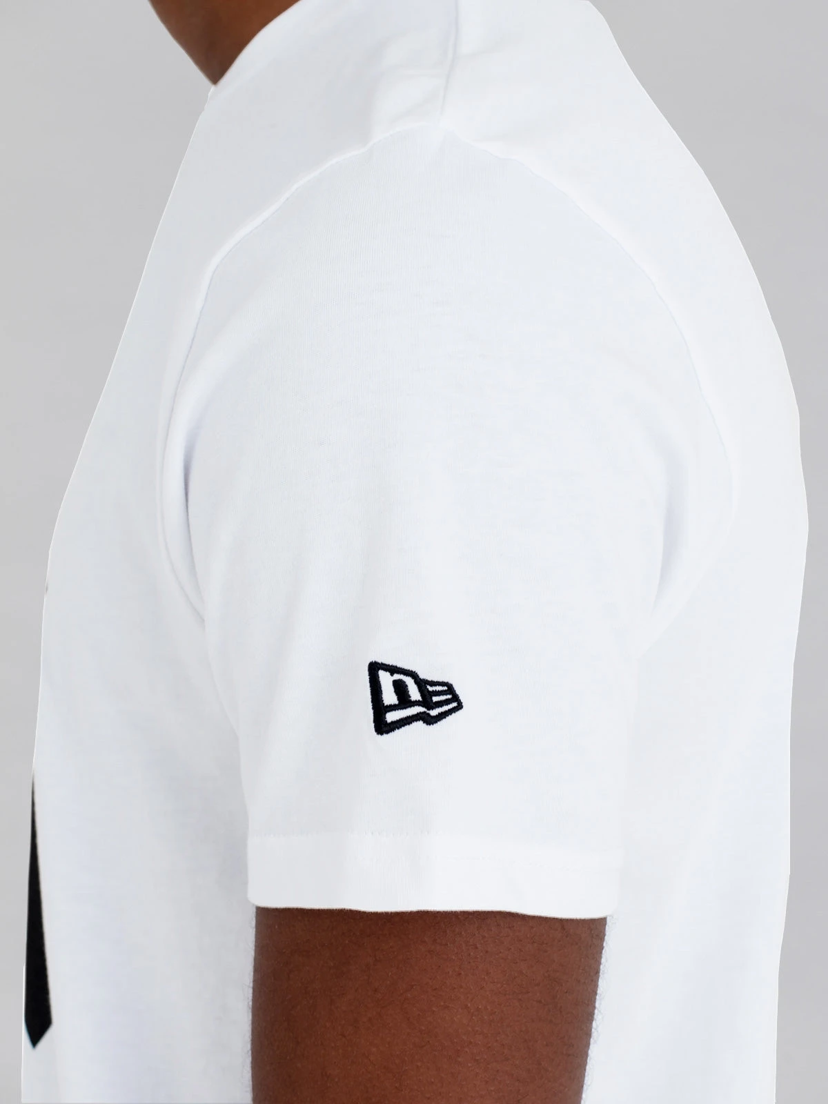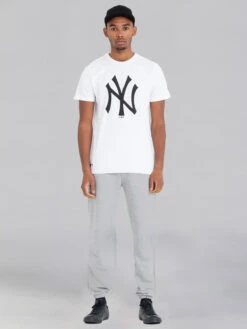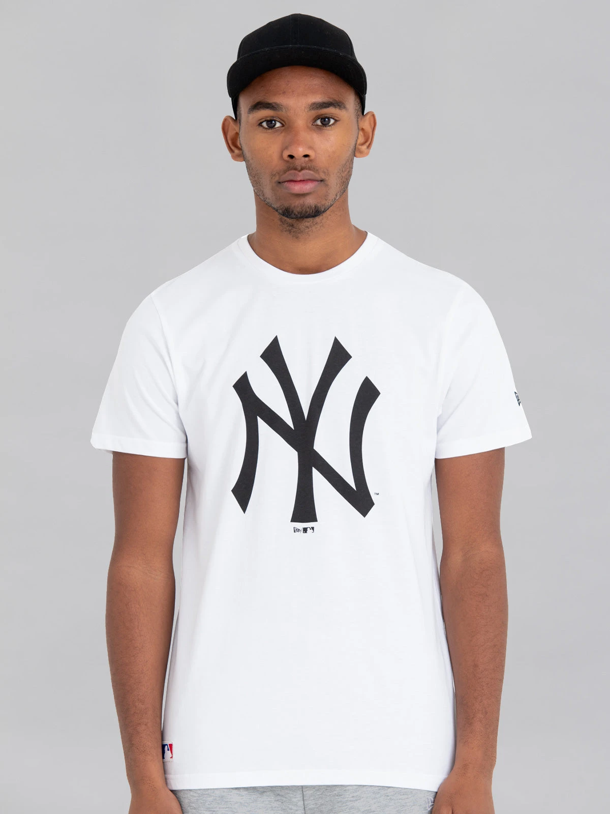 Short sleeve T-shirt All-over white colourway Yankees’ official team logo to the centre chest in black MLB woven badge logo to the hem New Era flag direct embroidery to the left sleeve Made from 100% cotton knit fabric