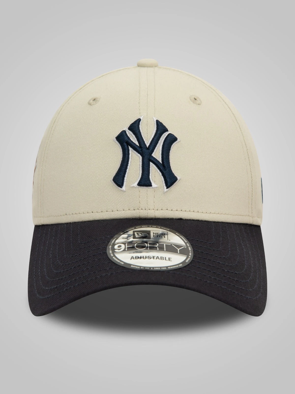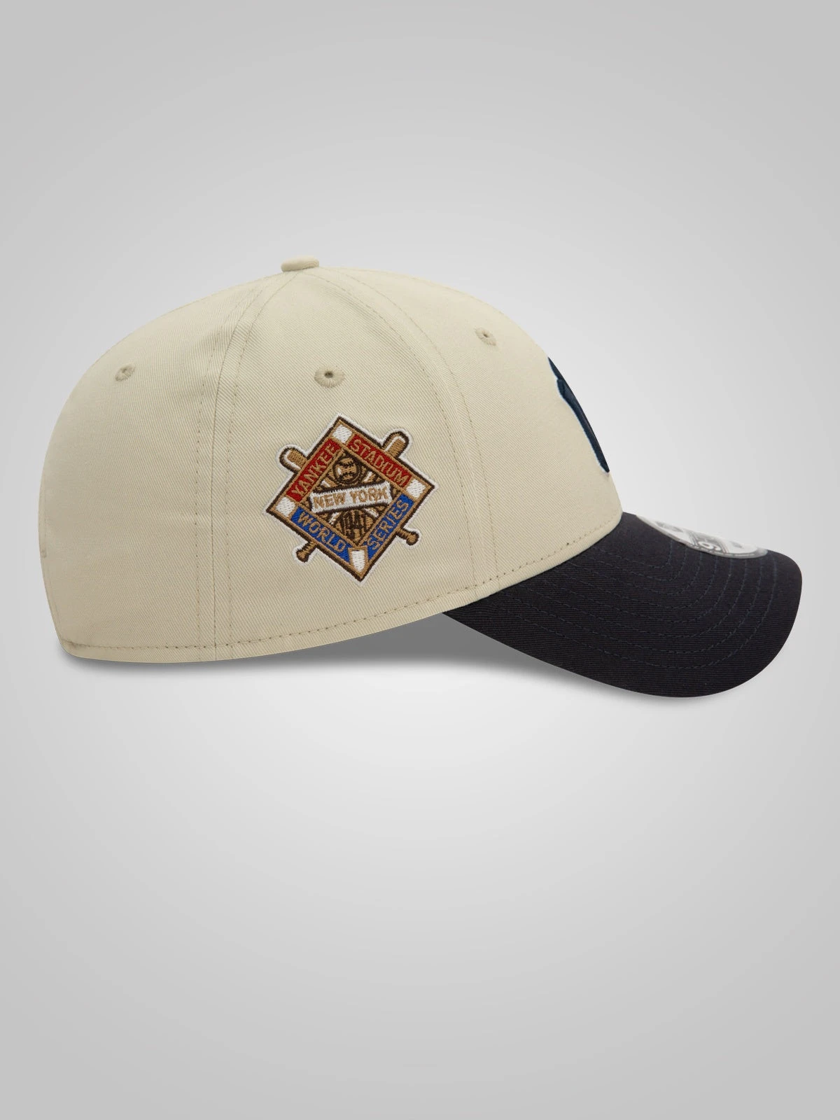 New York Yankees logo on front Cooperstown World Series sidepatch on right New Era Flag embroidered on left Structured crown Strapback Navy undervisor Gender: Unisex Fabric: 100% Cotton Fit: Baseball Cap Brand: Major League Baseball