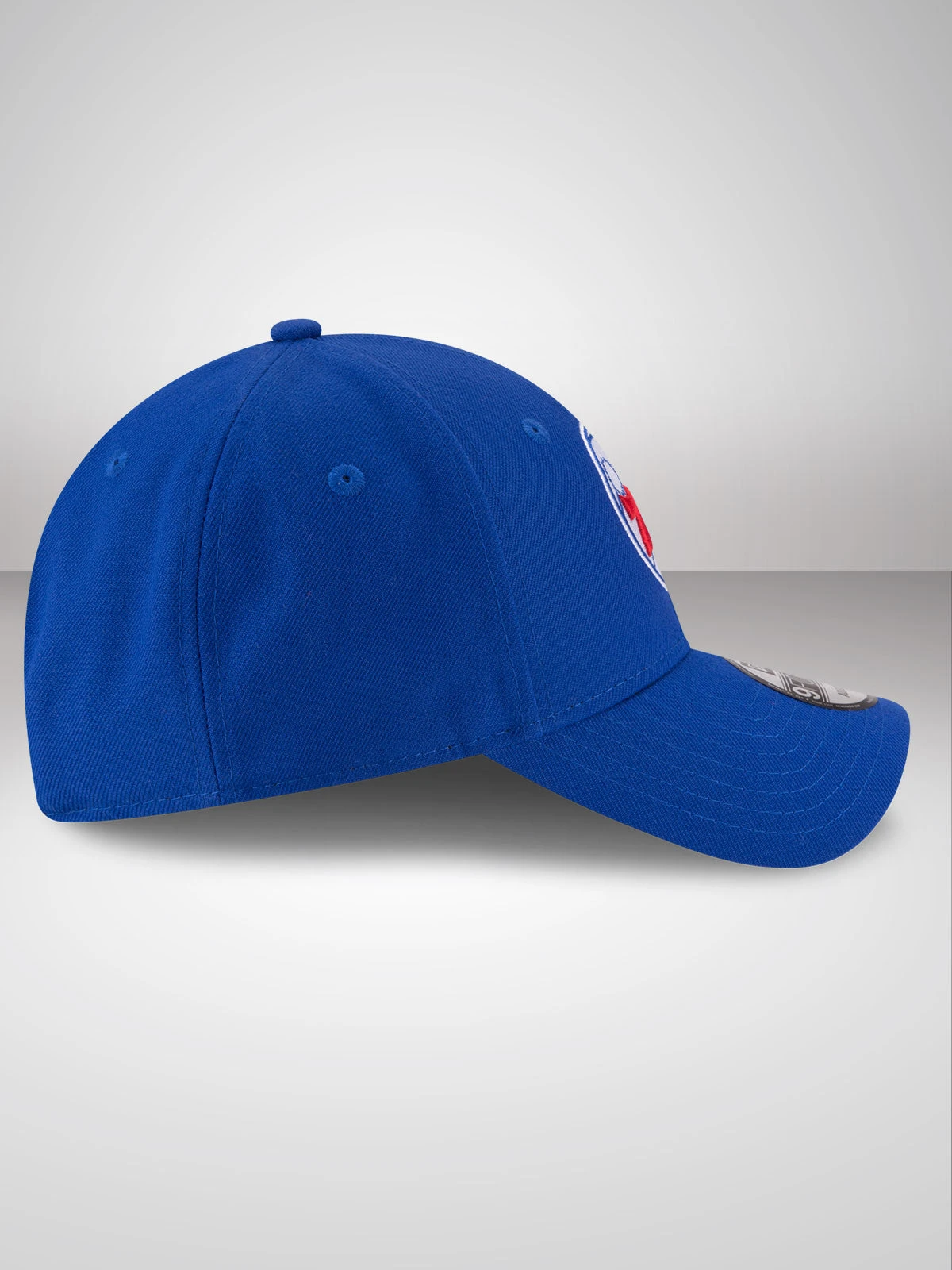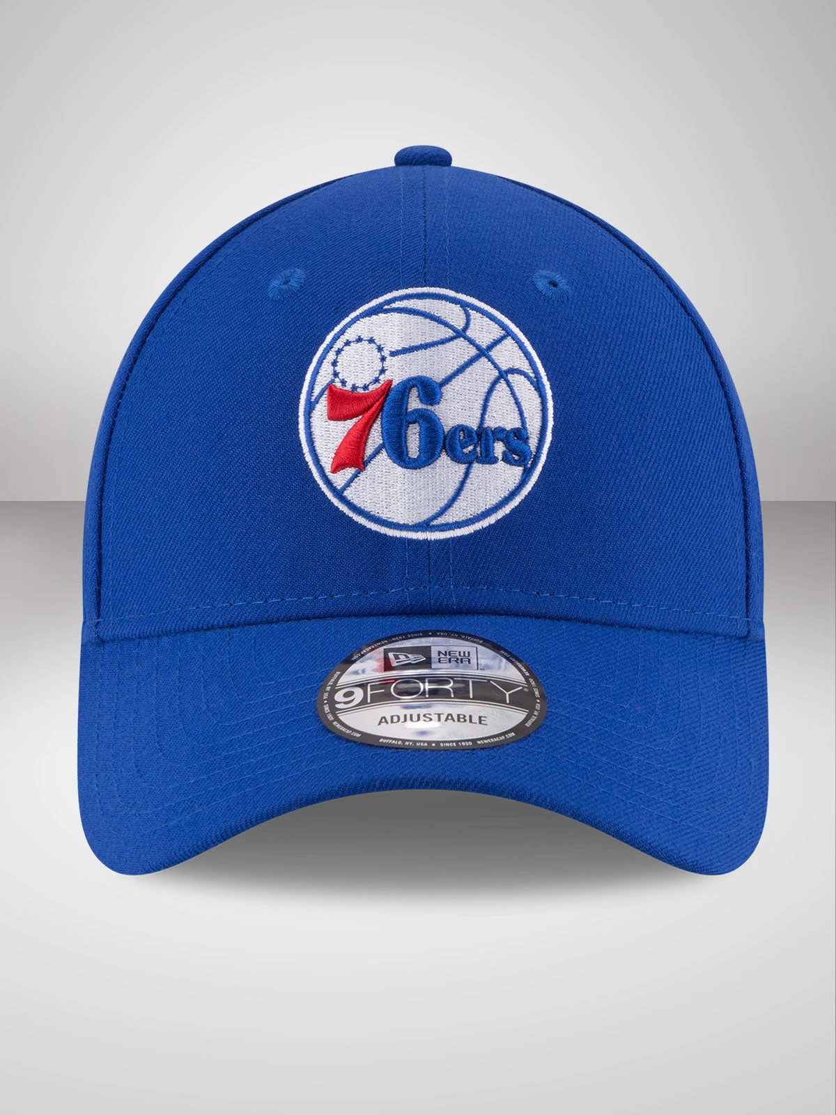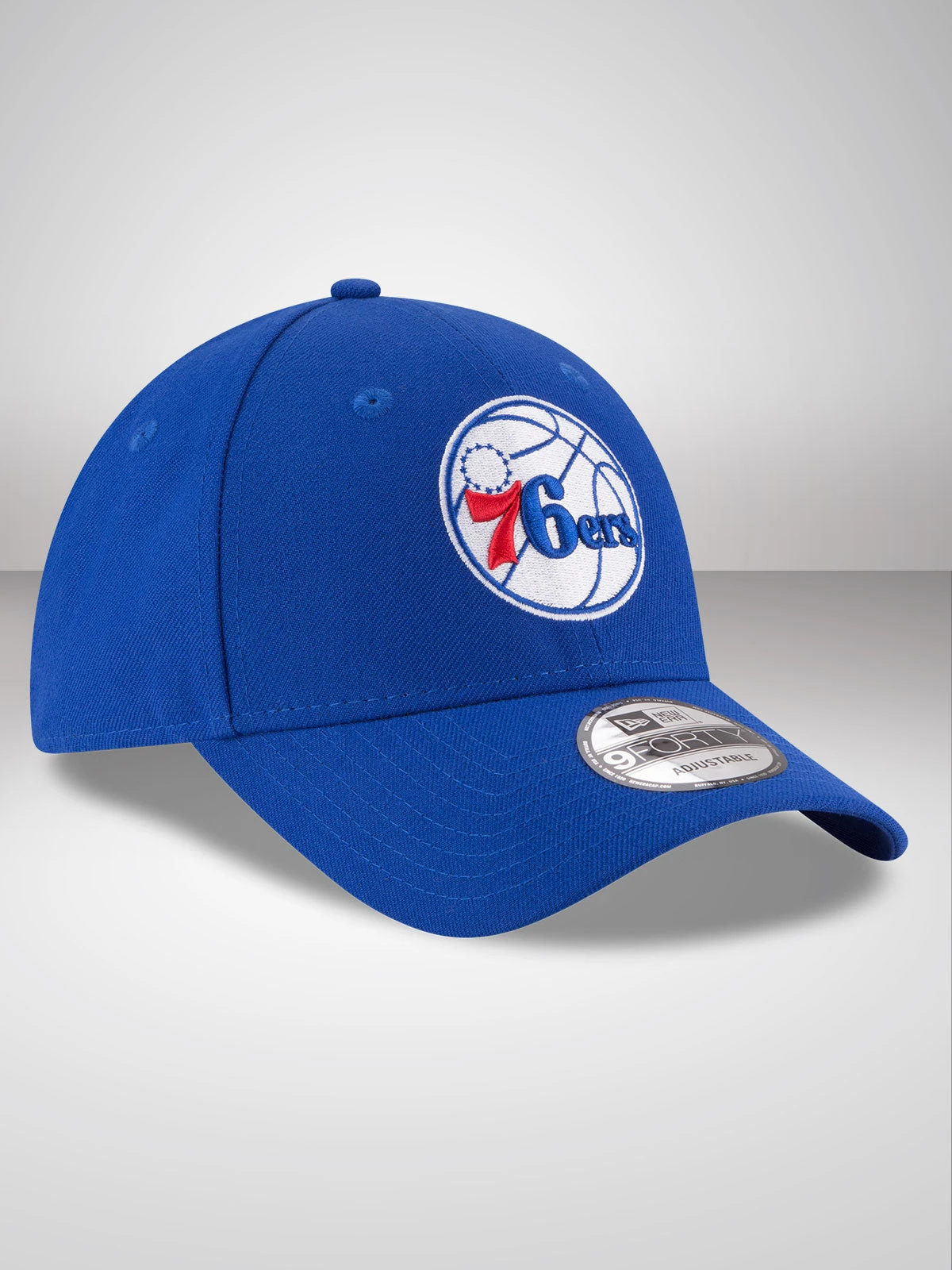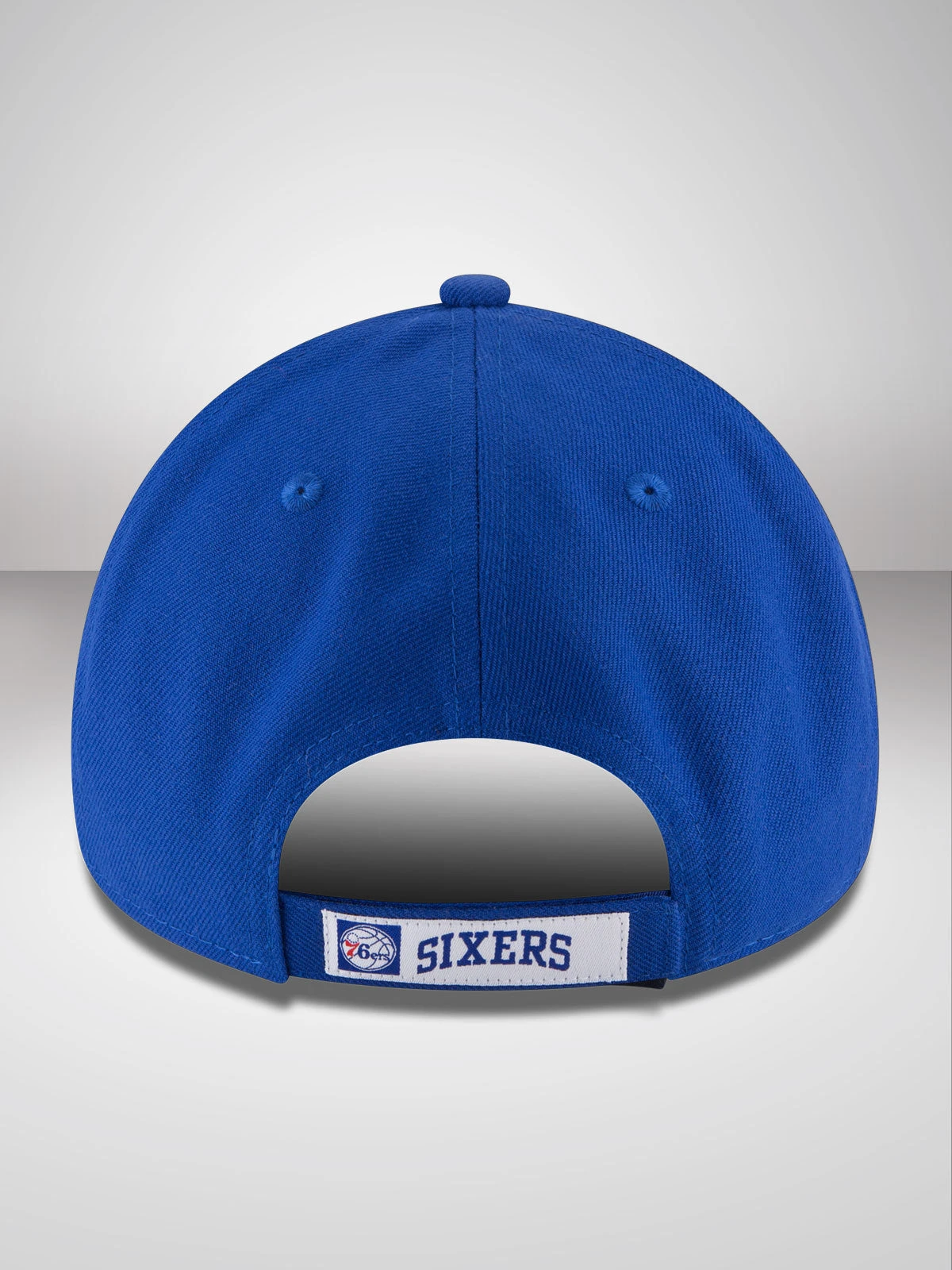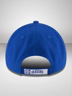 Adjustable 9FORTY fit. Contoured crown with structured front panels in all-over team blue. Matching ready curved visor. Philadelphia 76ers’ official team logo embroidered in team colours to the front. Open back with an adjustable Velcro strap closure to the rear. Matching blue top button and stitched eyelets for added breathability. New Era flag in contrasting red embroidery to the left hand side.