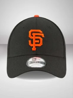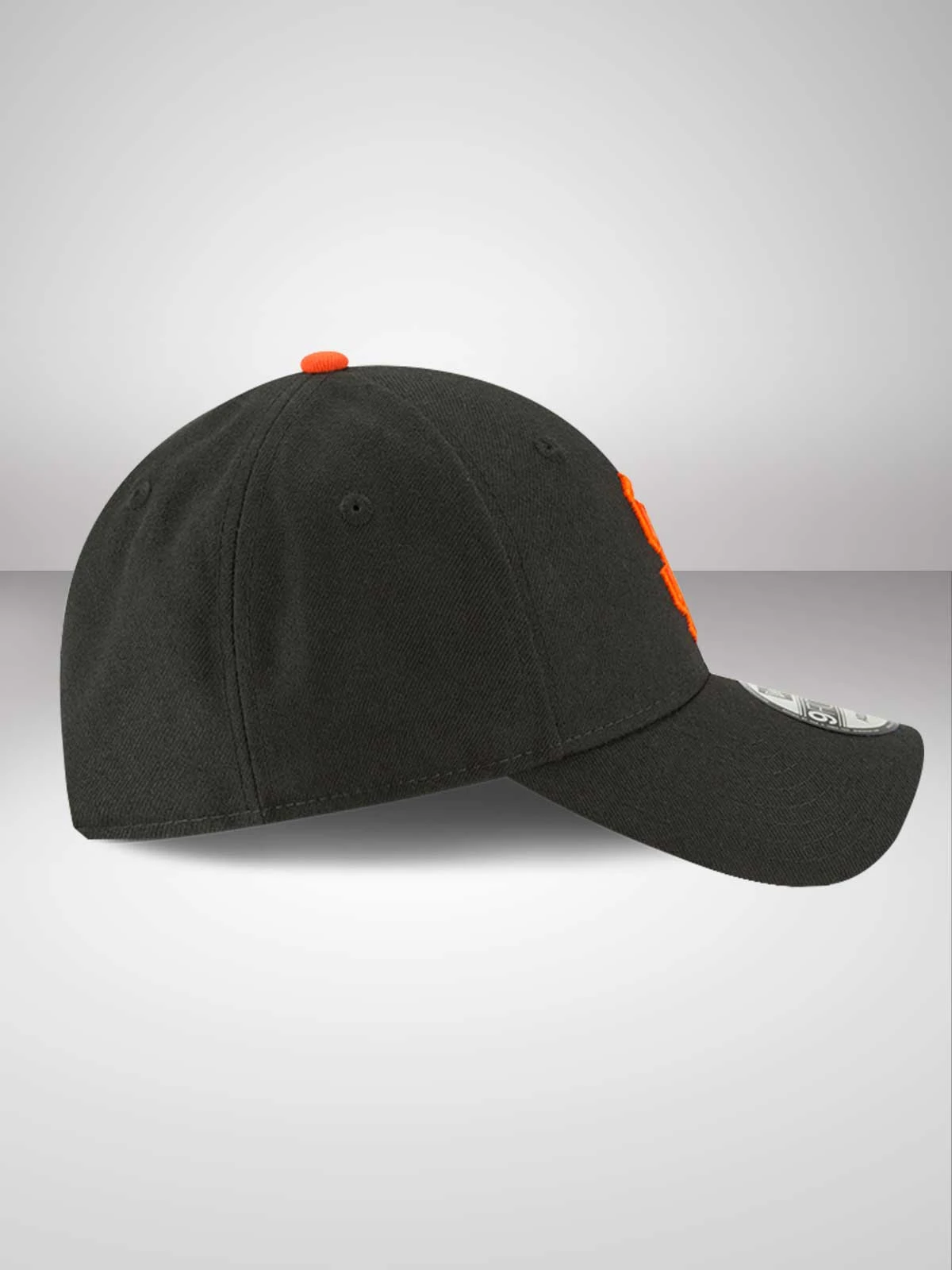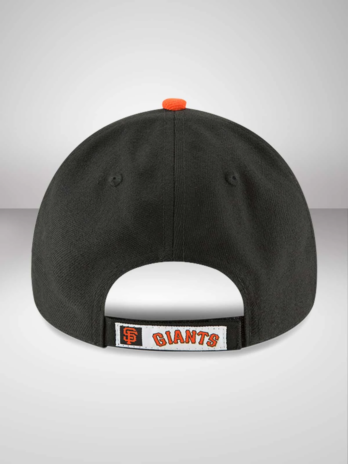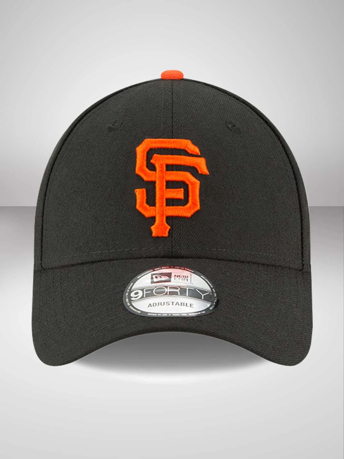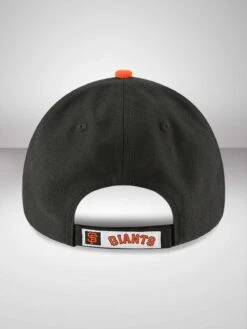 Adjustable 9FORTY profile. Contoured crown with structured panels in all-over black. Matching black ready curved visor. San Francisco Giants’ official team logo embroidered to the front in orange. Open back with an adjustable strap and woven team label. New Era flag embroidered to the left.
