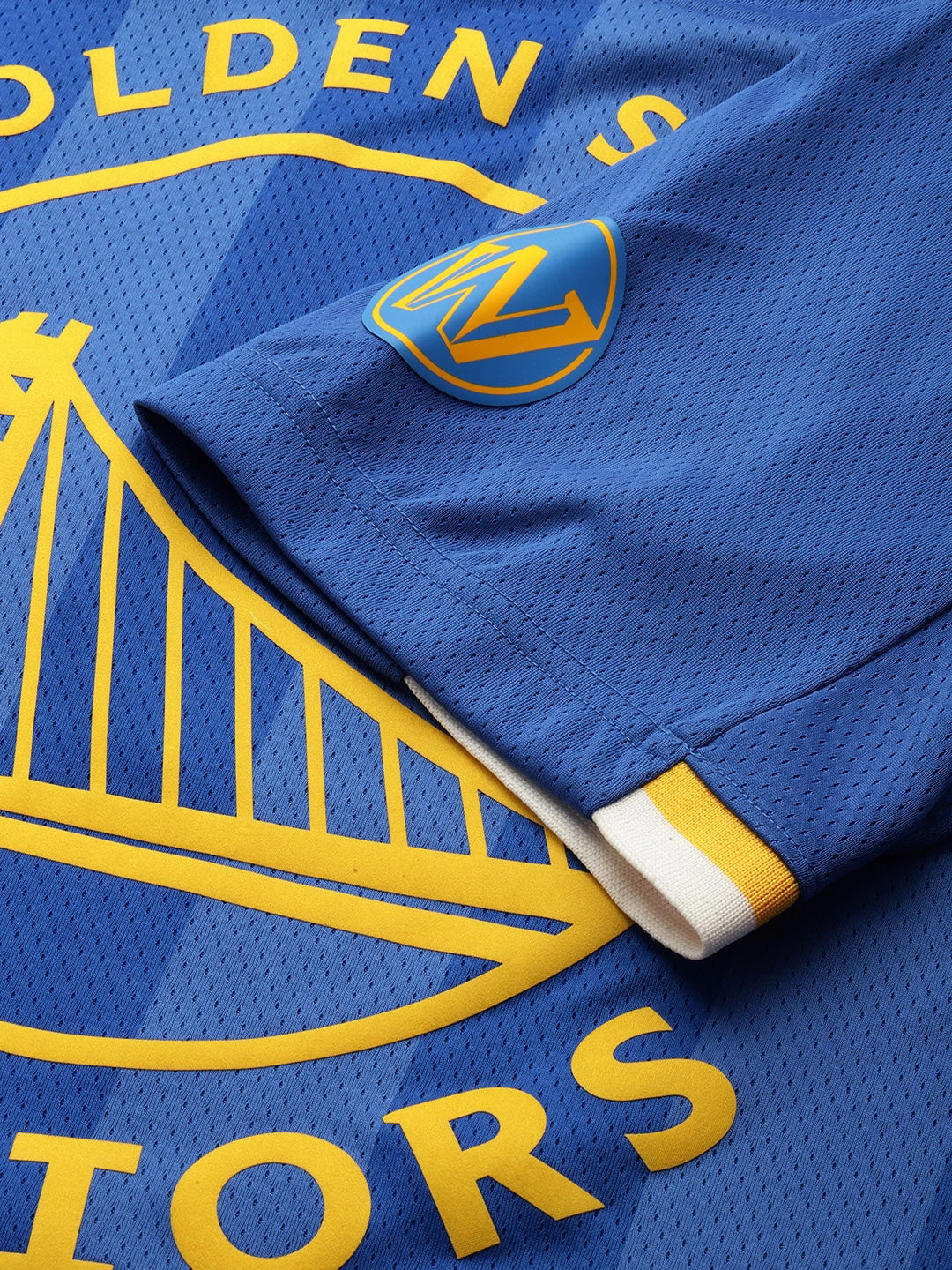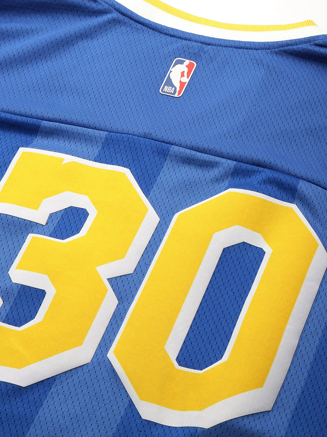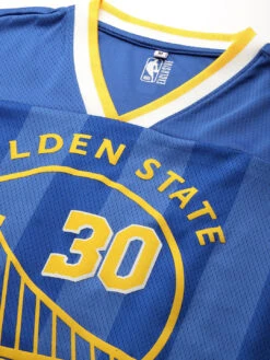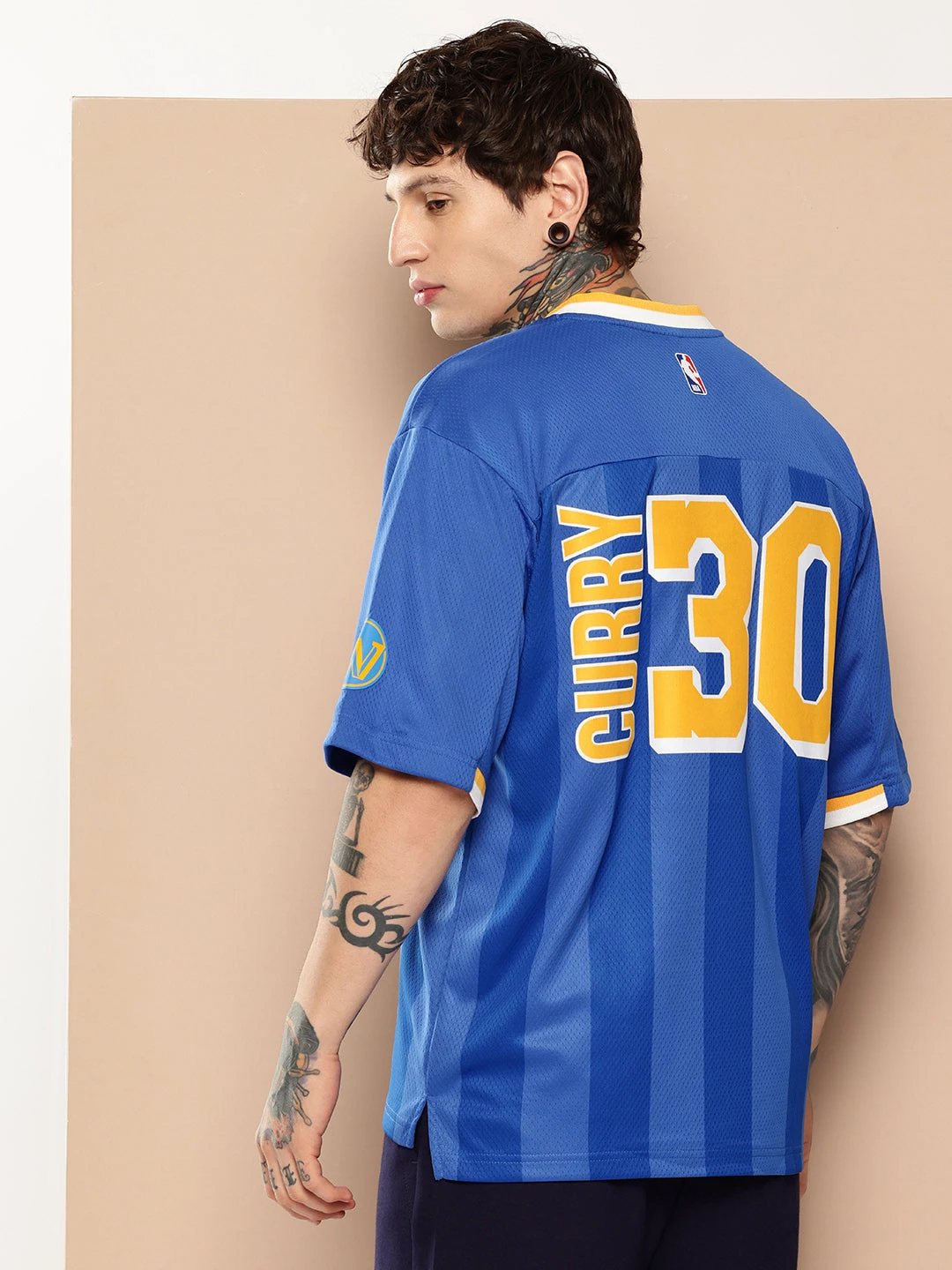 Vintage oversized t-shirt with tonal stripes on the front and back Team silicon badge transfer and NBA silicon badge transfer Player name and number matte transfer to the front and back of the garment Gender: Unisex Fabric: 100% Poly Rice Knit Fit: Oversized Fit Brand: National Basketball Players Association