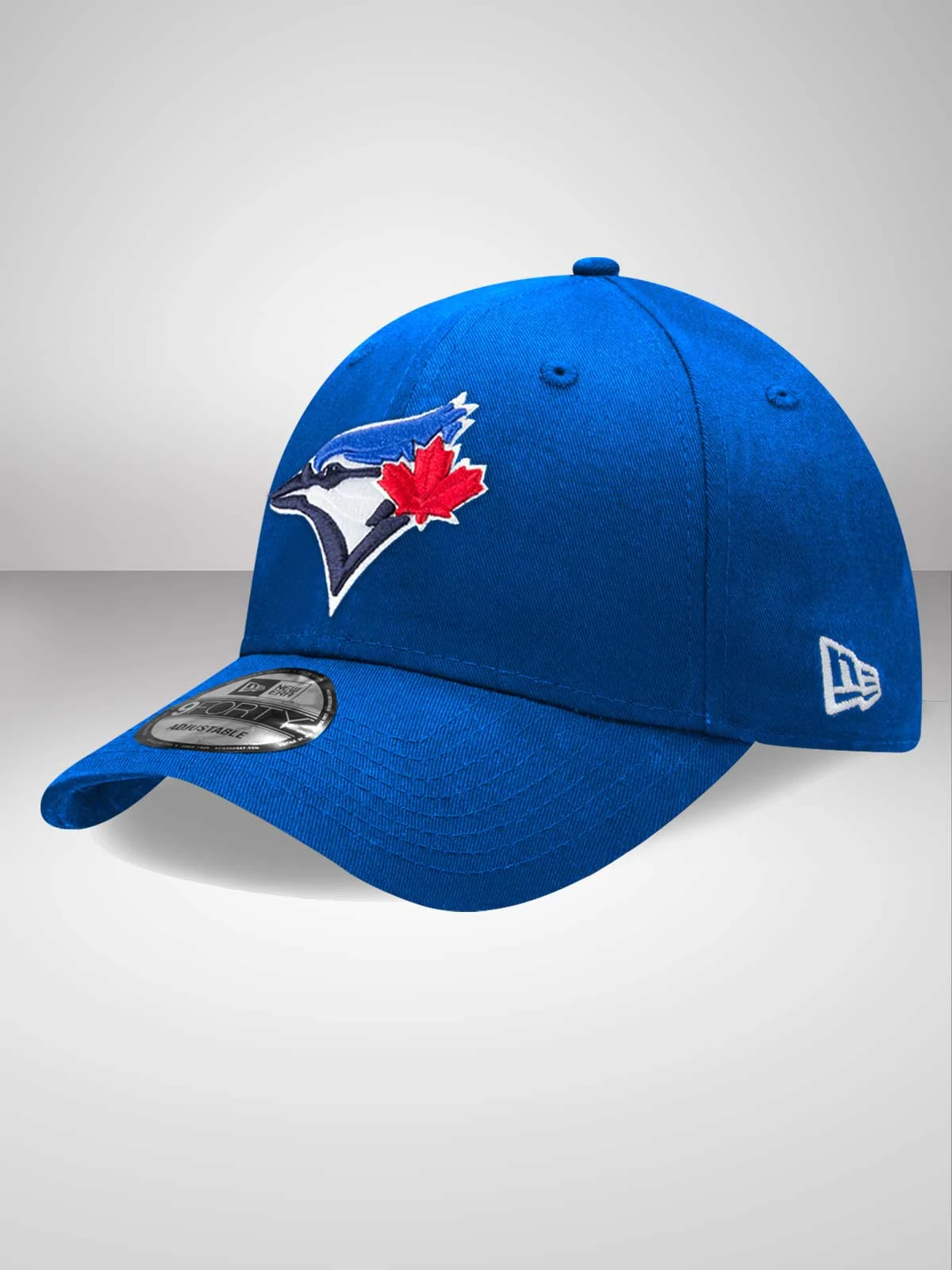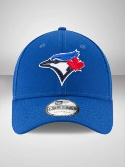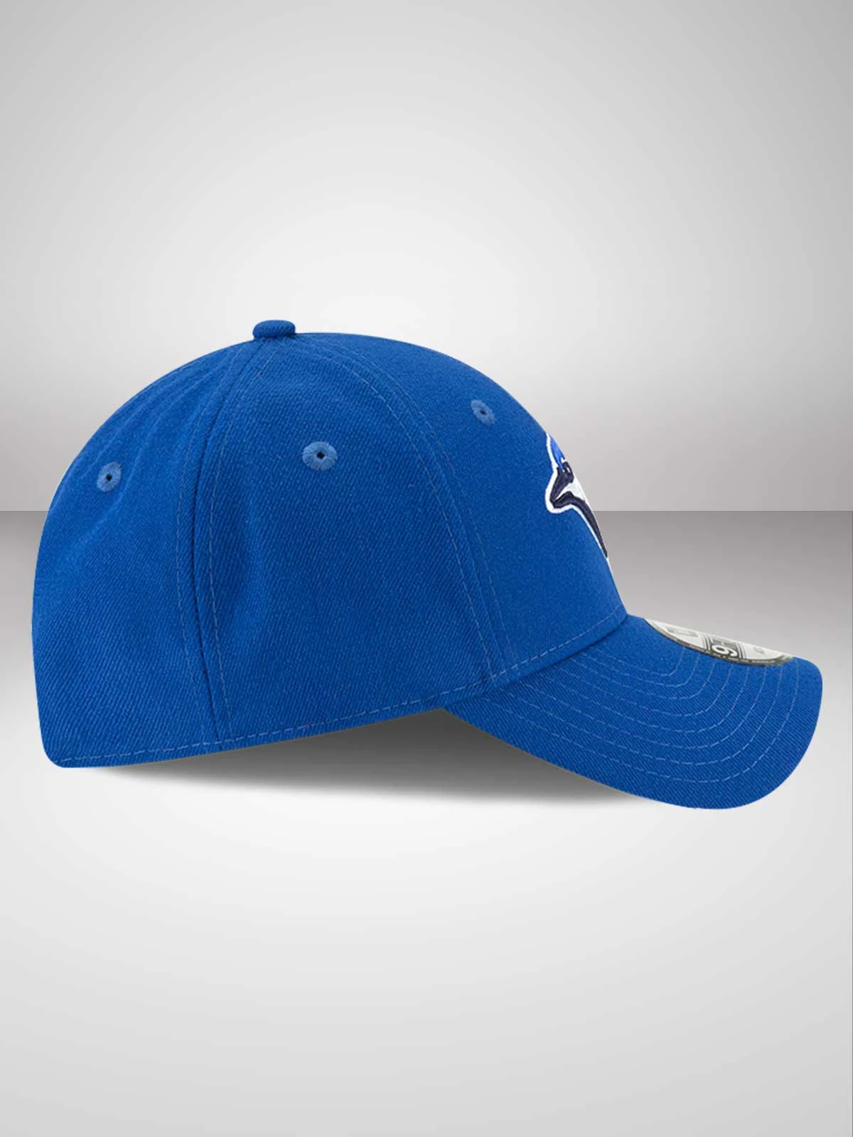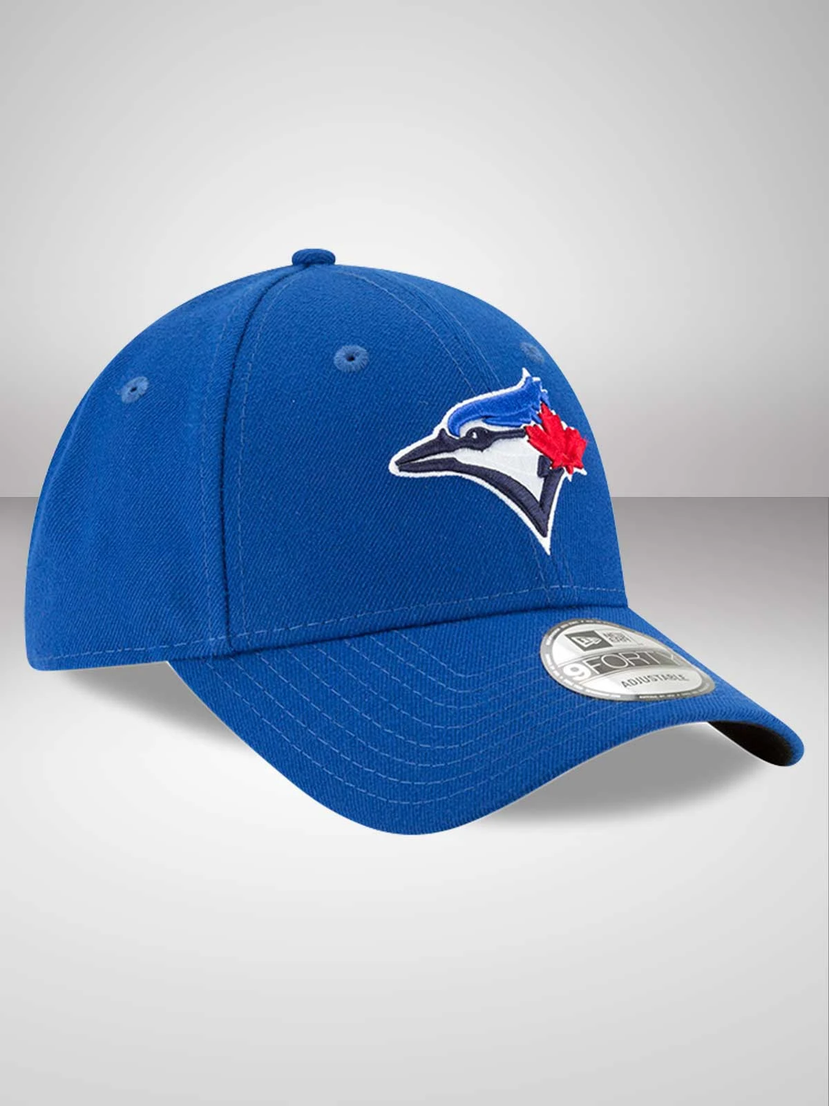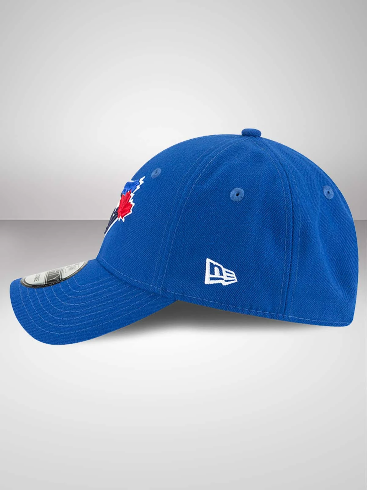 Adjustable 9FORTY profile. Contoured crown with structured panels in blue. Matching blue ready curved visor. Toronto Blue Jays’ official team logo embroidered to the front. Open back with an adjustable strap closure. Optic white New Era flag embroidered to the left.