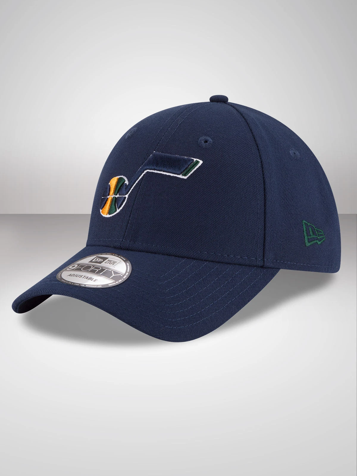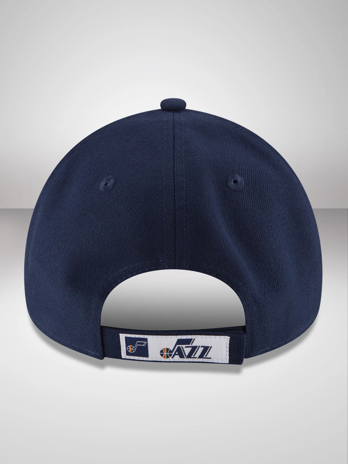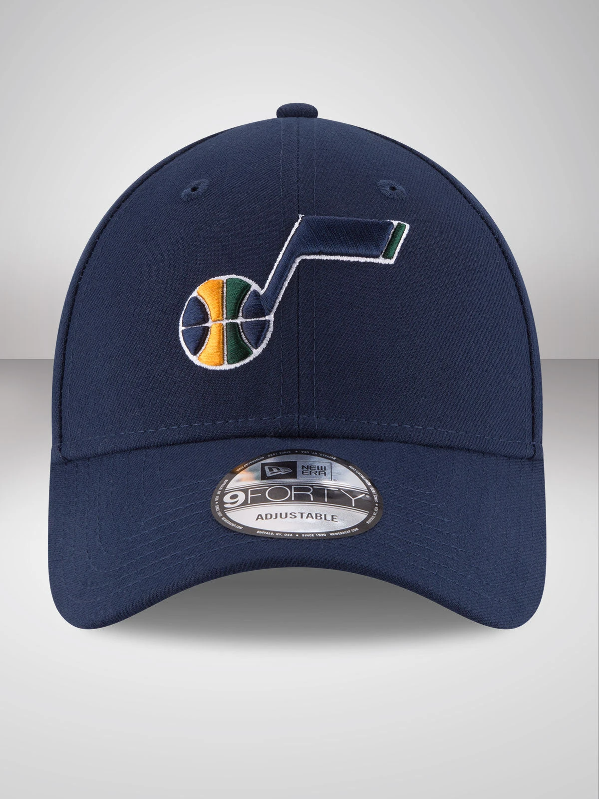 Adjustable 9FORTY fit. Contoured crown in team navy with structured panels. Matching fully curved visor. Utah Jazz’s official team logo embroidered in full team colours to the front. Matching top button and stitched eyelets. Open back with an adjustable Velcro strap featuring a woven label. Contrasting New Era flag in green to the left side.